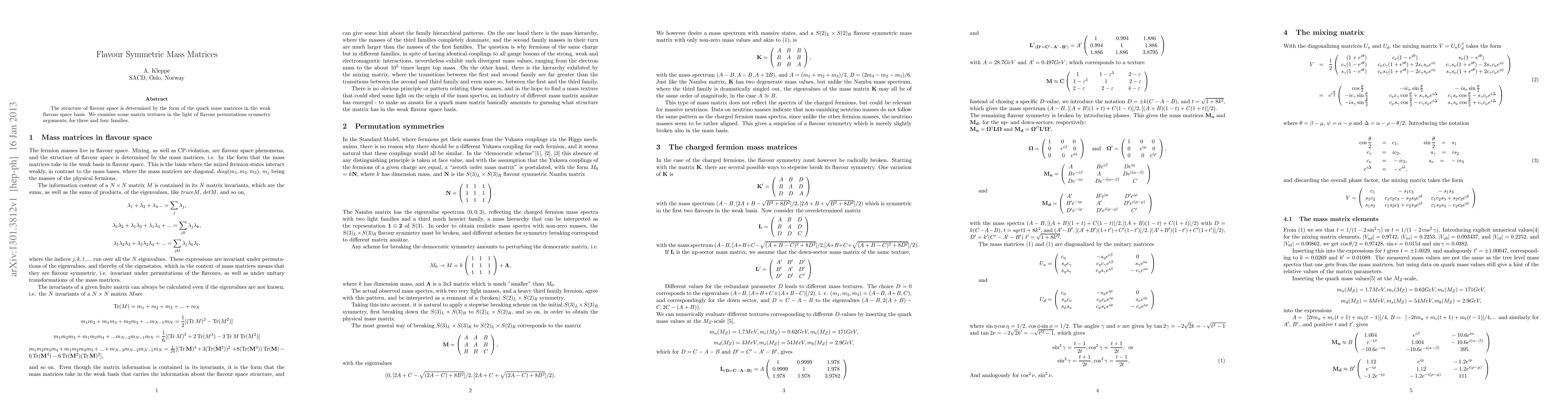 Researchers investigated flavour symmetry in quark mass matrices for 3- and 4-family models, examining texture patterns that satisfy flavour permutations symmetry arguments.
