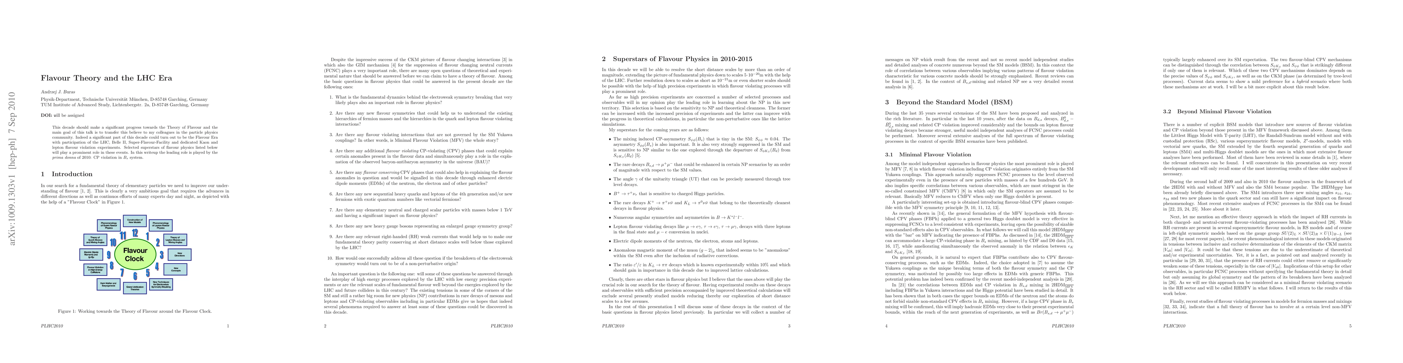 This decade should make a significant progress towards the Theory of Flavour and the main goal of this talk is to transfer this believe to my colleagues in the particle physics community. Indeed a significant part of this decade could turn out to be the Flavour Era with participation of the LHC, Belle II, Super-Flavour-Facility and dedicated Kaon and lepton flavour violation experiments. Selected superstars of flavour physics listed below will play a prominent role in these events. In this writeup the leading role is played by the prima donna of 2010: CP violation in B_s system.