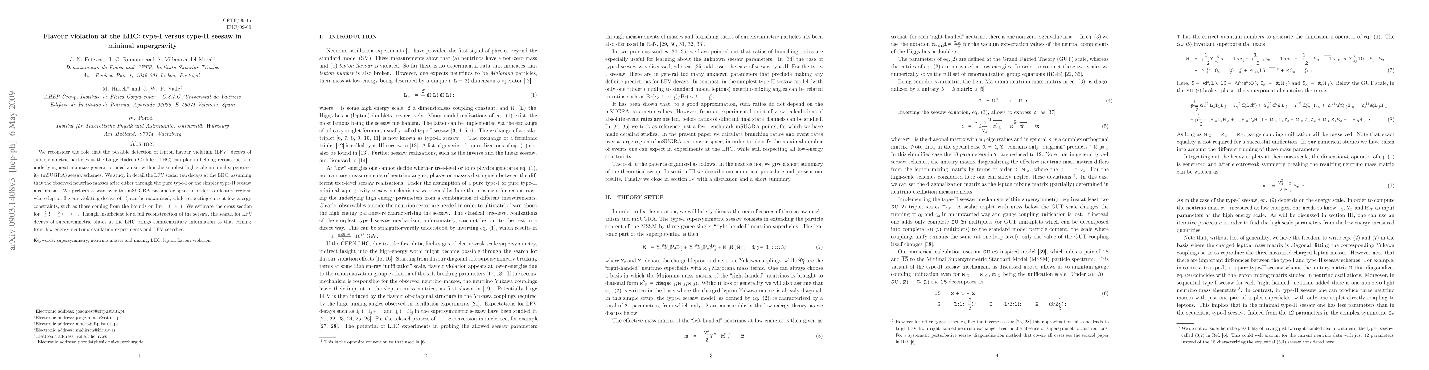 This paper examines the potential of detecting lepton flavour violating decays of supersymmetric particles at the LHC to distinguish between type-I and type-II seesaw mechanisms in minimal supergravity models. It focuses on LFV scalar tau decays and identifies regions in the mSUGRA parameter space where these decays are maximized, providing complementary insights to low-energy neutrino experiments.