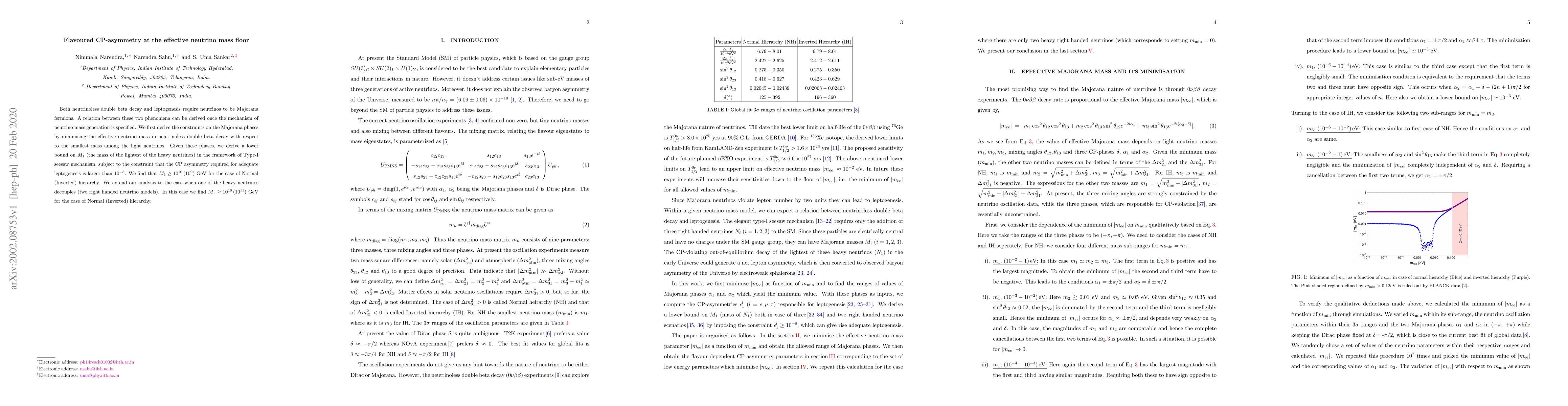 Both neutrinoless double beta decay and leptogenesis require neutrinos to be Majorana fermions. A relation between these two phenomena can be derived once the mechanism of neutrino mass generation is specified. We first derive the constraints on the Majorana phases by minimising the effective neutrino mass in neutrinoless double beta decay with respect to the smallest mass among the light neutrinos. Given these phases, we derive a lower bound on $M_{1}$ (the mass of the lightest of the heavy neutrinos) in the framework of Type-I seesaw mechanism, subject to the constraint that the CP asymmetry required for adequate leptogenesis is larger than $10^{-8}$. We find that $M_{1} \geq 10^{10}\,(10^{9})$ GeV for the case of Normal (Inverted) hierarchy. We extend our analysis to the case when one of the heavy neutrinos decouples (two right handed neutrino models). In this case we find $M_{1} \geq 10^{10}\,(10^{11})$ GeV for the case of Normal (Inverted) hierarchy.