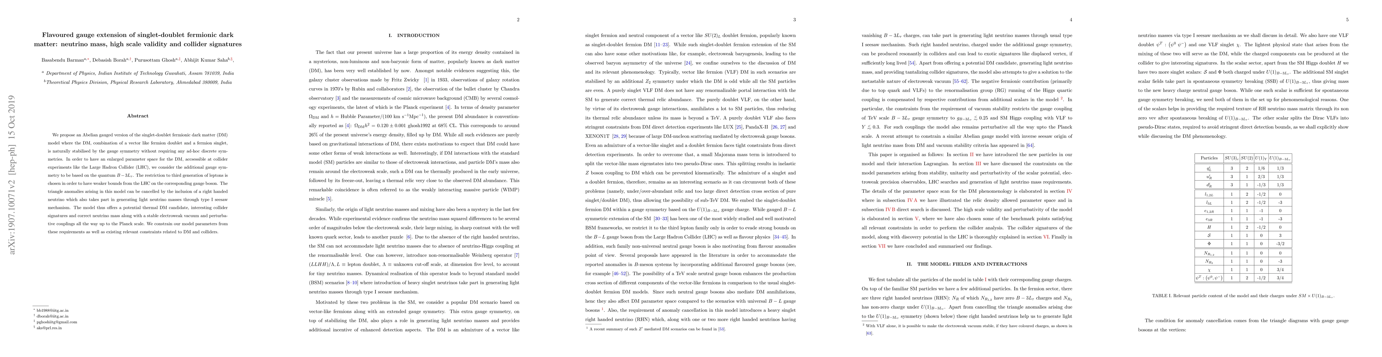 This paper proposes an Abelian gauged extension of a singlet-doublet fermionic dark matter model based on the $B-3L_{\tau}$ symmetry, aiming for collider detectability and low mass DM. It includes a right-handed neutrino to cancel triangle anomalies and generate light neutrino masses via the type I seesaw mechanism, ensuring high scale validity and stable electroweak vacuum.