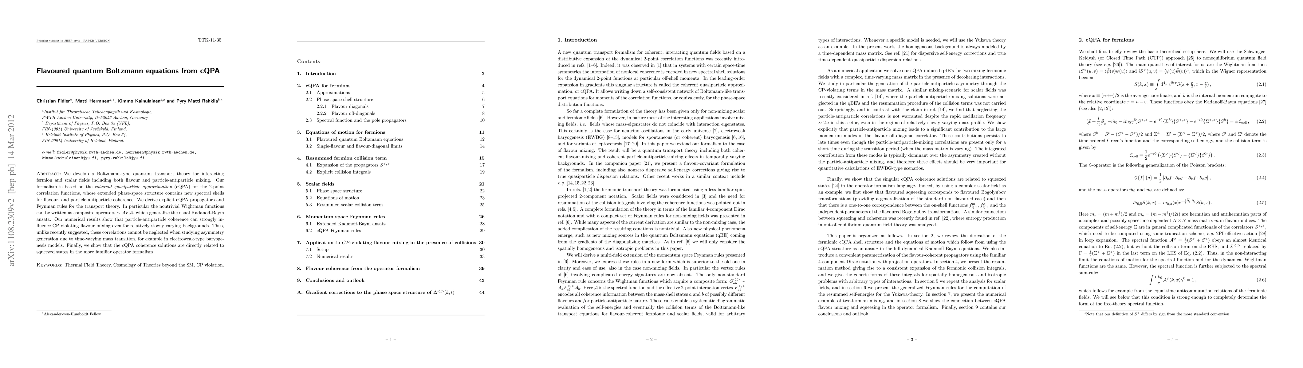 We develop a Boltzmann-type quantum transport theory for interacting fermion and scalar fields including both flavour and particle-antiparticle mixing. Our formalism is based on the coherent quasiparticle approximation (cQPA) for the 2-point correlation functions, whose extended phase-space structure contains new spectral shells for flavour- and particle-antiparticle coherence. We derive explicit cQPA propagators and Feynman rules for the transport theory. In particular the nontrivial Wightman functions can be written as composite operators $\sim {\cal A} F {\cal A}$, which generalize the usual Kadanoff-Baym ansatz. Our numerical results show that particle-antiparticle coherence can strongly influence CP-violating flavour mixing even for relatively slowly-varying backgrounds. Thus, unlike recently suggested, these correlations cannot be neglected when studying asymmetry generation due to time-varying mass transition, for example in electroweak-type baryogenesis models. Finally, we show that the cQPA coherence solutions are directly related to squeezed states in the more familiar operator formalism.