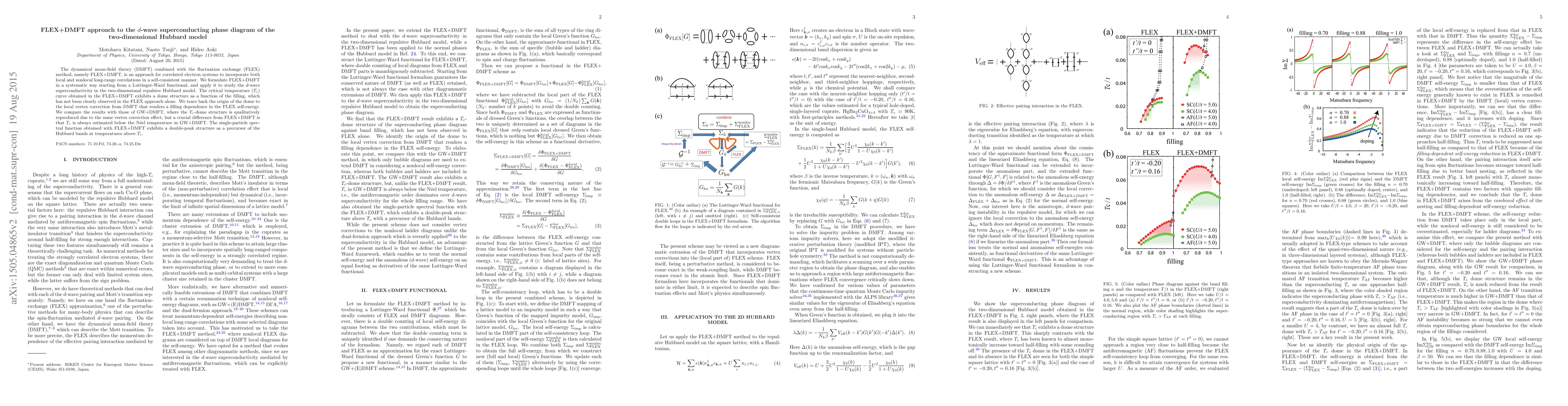 The dynamical mean-field theory (DMFT) combined with the fluctuation exchange (FLEX) method, namely FLEX+DMFT, is an approach for correlated electron systems to incorporate both local and non-local long-range correlations in a self-consistent manner. We formulate FLEX+DMFT in a systematic way starting from a Luttinger-Ward functional, and apply it to study the $d$-wave superconductivity in the two-dimensional repulsive Hubbard model. The critical temperature ($T_c$) curve obtained in the FLEX+DMFT exhibits a dome structure as a function of the filling, which has not been clearly observed in the FLEX approach alone. We trace back the origin of the dome to the local vertex correction from DMFT that renders a filling dependence in the FLEX self-energy. We compare the results with those of GW+DMFT, where the $T_c$-dome structure is qualitatively reproduced due to the same vertex correction effect, but a crucial difference from FLEX+DMFT is that $T_c$ is always estimated below the N\'{e}el temperature in GW+DMFT. The single-particle spectral function obtained with FLEX+DMFT exhibits a double-peak structure as a precursor of the Hubbard bands at temperature above $T_c$.