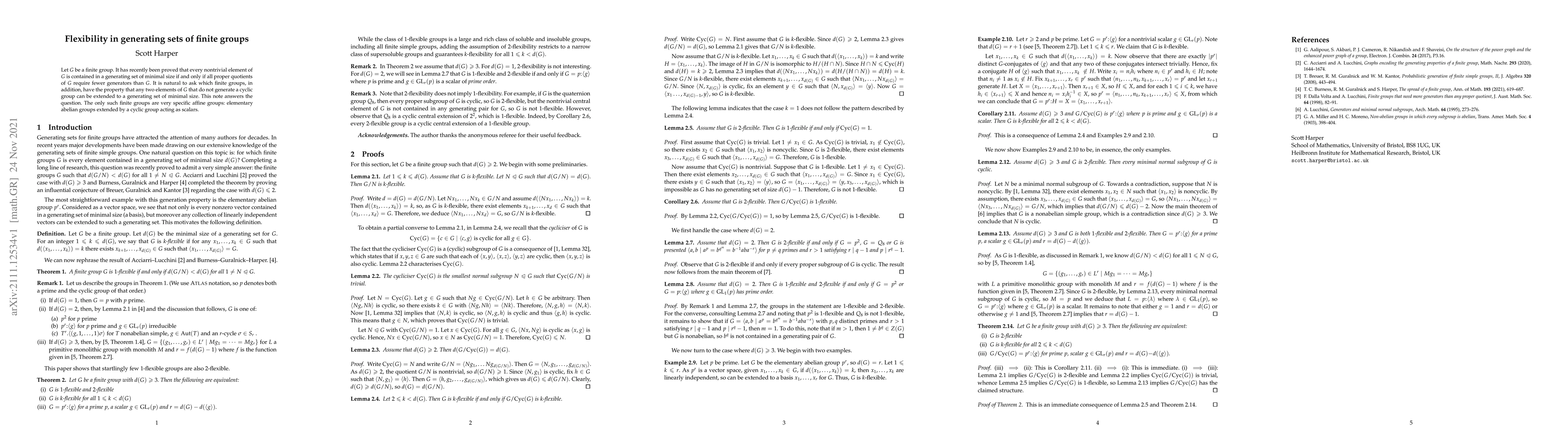 Let G be a finite group. It has recently been proved that every nontrivial element of G is contained in a generating set of minimal size if and only if all proper quotients of G require fewer generators than G. It is natural to ask which finite groups, in addition, have the property that any two elements of G that do not generate a cyclic group can be extended to a generating set of minimal size. This note answers the question. The only such finite groups are very specific affine groups: elementary abelian groups extended by a cyclic group acting as scalars.