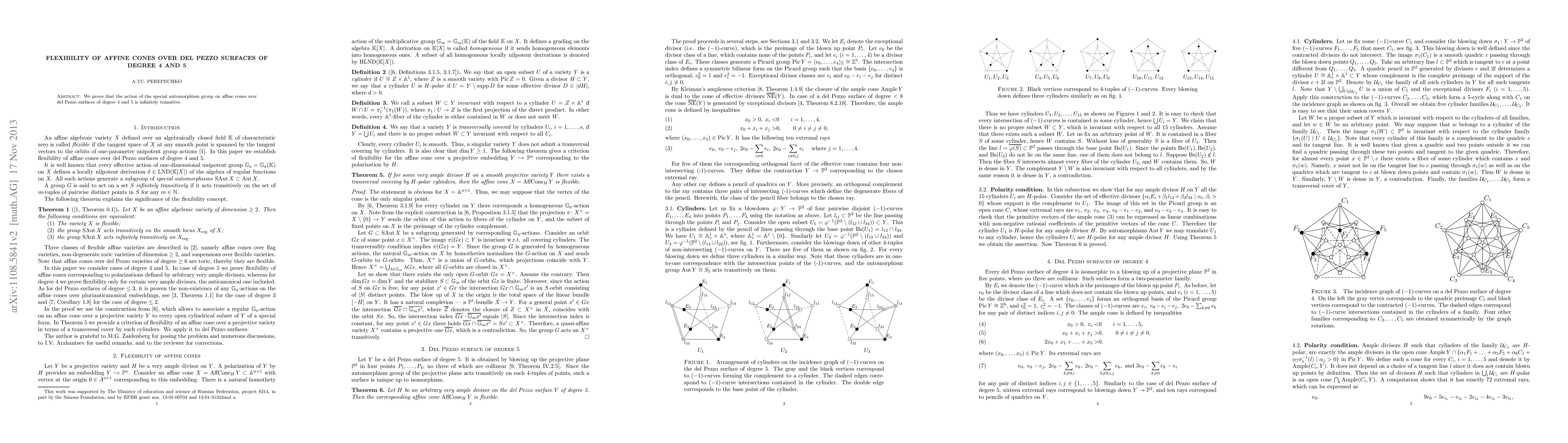 Summary: The research demonstrates that the special automorphism group's action on affine cones over del Pezzo surfaces of degrees 4 and 5 exhibits infinite transitivity. This finding provides deeper insights into the geometric properties of these surfaces.