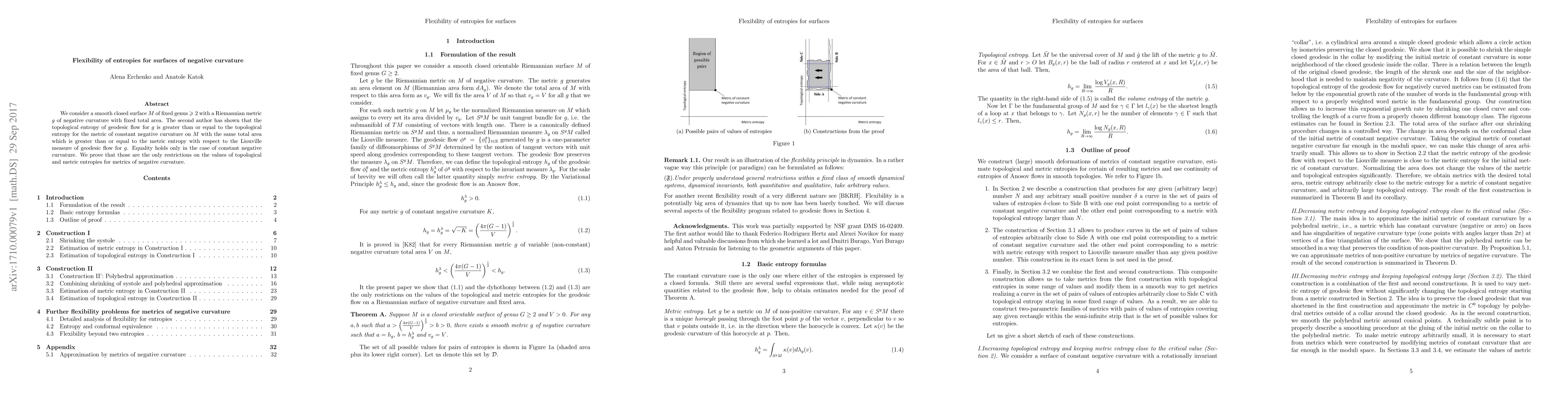 Researchers study the flexibility of entropies for surfaces with negative curvature, finding that topological and metric entropies can vary without restrictions beyond constant negative curvature.