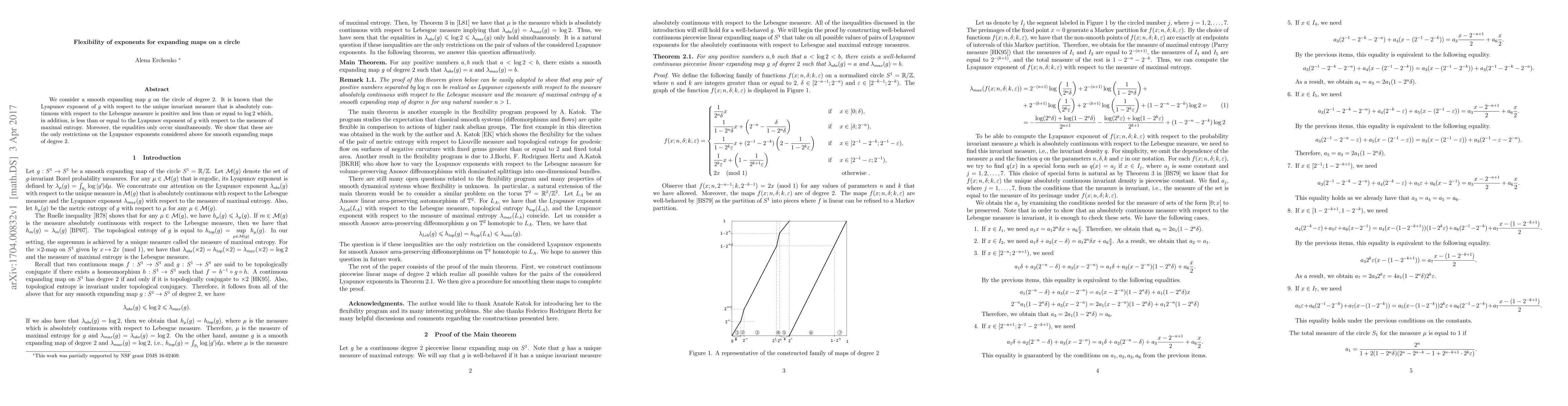 This paper investigates the flexibility of Lyapunov exponents for smooth expanding maps of degree 2 on a circle, demonstrating that the positive exponent is bounded above by log 2, and that these bounds are the only constraints on the exponents for such maps.