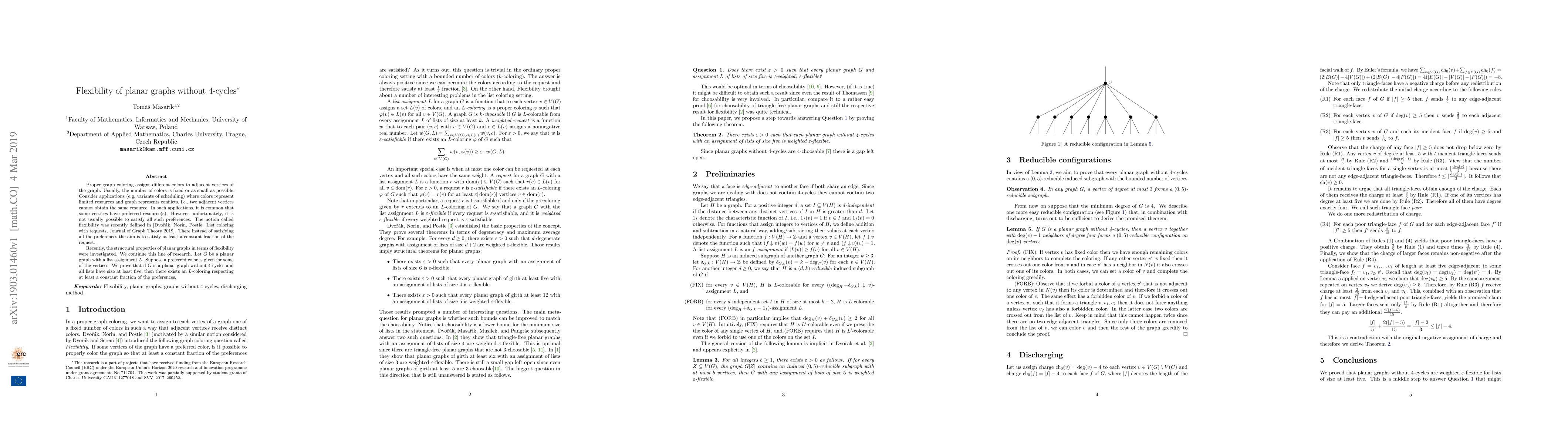 This research contributes to understanding the structural properties of planar graphs in terms of flexibility, which has applications in scheduling and resource allocation problems where conflicts are represented as graph edges and vertices have preferred resources.