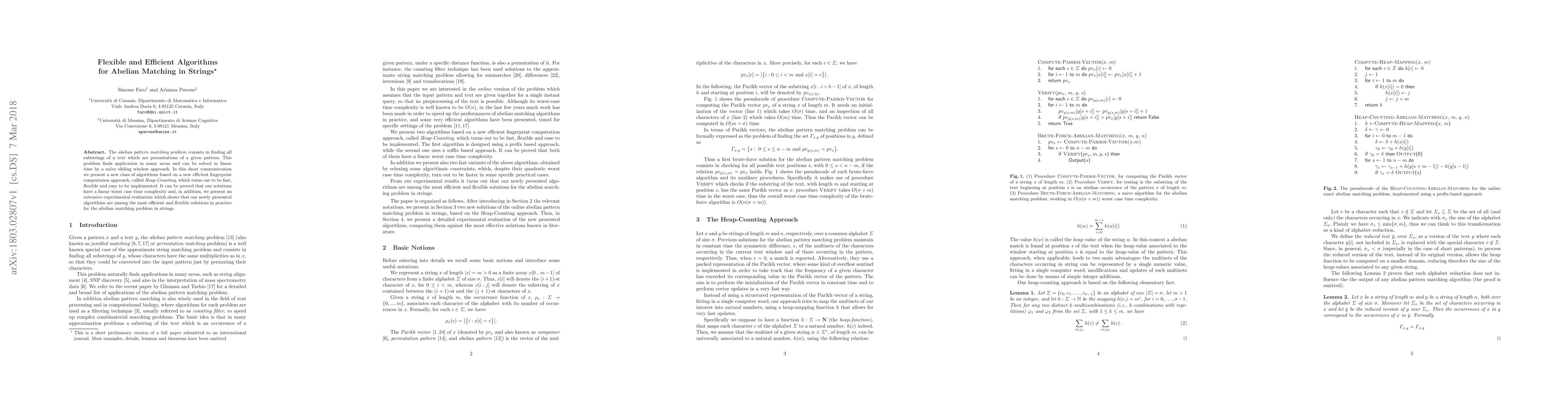 The abelian pattern matching problem consists in finding all substrings of a text which are permutations of a given pattern. This problem finds application in many areas and can be solved in linear time by a naive sliding window approach. In this short communication we present a new class of algorithms based on a new efficient fingerprint computation approach, called Heap-Counting, which turns out to be fast, flexible and easy to be implemented. It can be proved that our solutions have a linear worst case time complexity and, in addition, we present an extensive experimental evaluation which shows that our newly presented algorithms are among the most efficient and flexible solutions in practice for the abelian matching problem in strings.