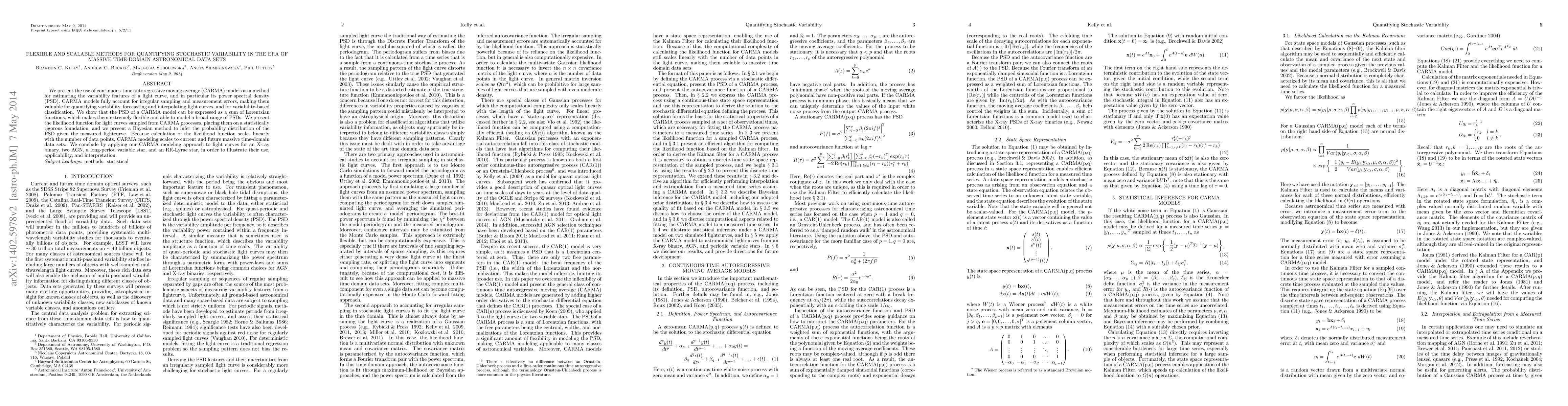 We present the use of continuous-time autoregressive moving average (CARMA) models as a method for estimating the variability features of a light curve, and in particular its power spectral density (PSD). CARMA models fully account for irregular sampling and measurement errors, making them valuable for quantifying variability, forecasting and interpolating light curves, and for variability-based classification. We show that the PSD of a CARMA model can be expressed as a sum of Lorentzian functions, which makes them extremely flexible and able to model a broad range of PSDs. We present the likelihood function for light curves sampled from CARMA processes, placing them on a statistically rigorous foundation, and we present a Bayesian method to infer the probability distribution of the PSD given the measured lightcurve. Because calculation of the likelihood function scales linearly with the number of data points, CARMA modeling scales to current and future massive time-domain data sets. We conclude by applying our CARMA modeling approach to light curves for an X-ray binary, two AGN, a long-period variable star, and an RR-Lyrae star, in order to illustrate their use, applicability, and interpretation.
