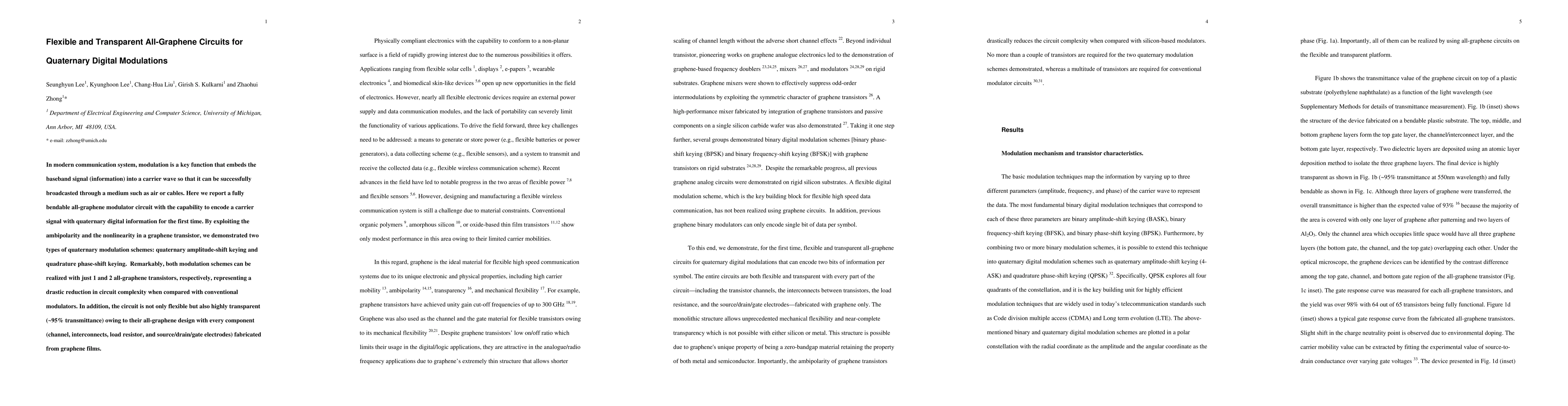 This research introduces a novel approach to flexible signal modulation using all-graphene circuits, which are both highly transparent and mechanically flexible, enabling potential integration into next-generation wearable and flexible communication systems.