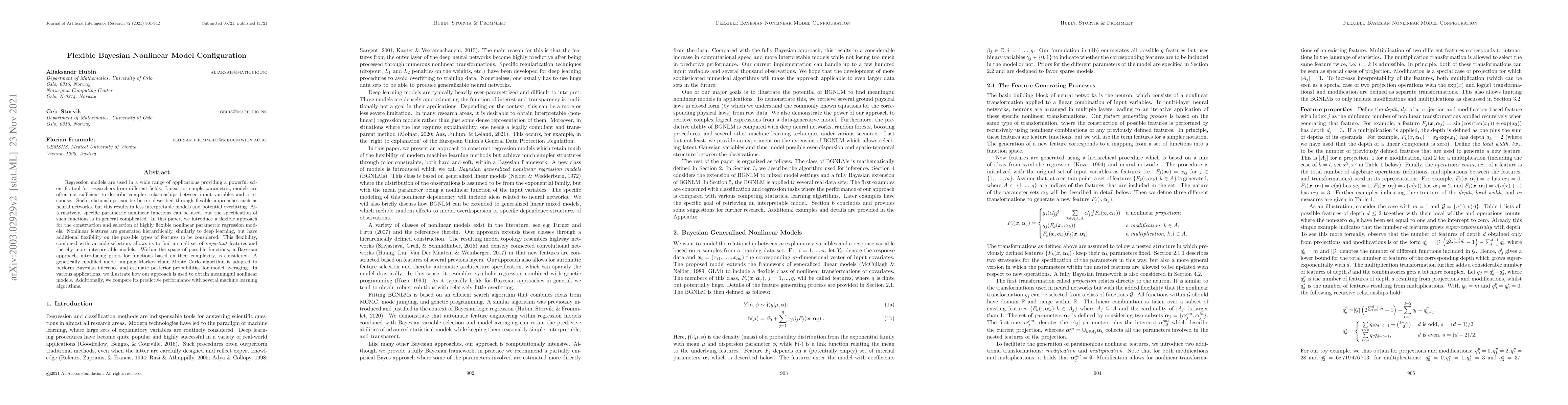 This paper proposes a flexible Bayesian nonlinear regression model that generates hierarchical nonlinear features and employs a modified MCMC algorithm for Bayesian inference, enabling the selection of interpretable and less overfit models compared to neural networks. The approach is shown to outperform several machine learning algorithms in predictive performance.
