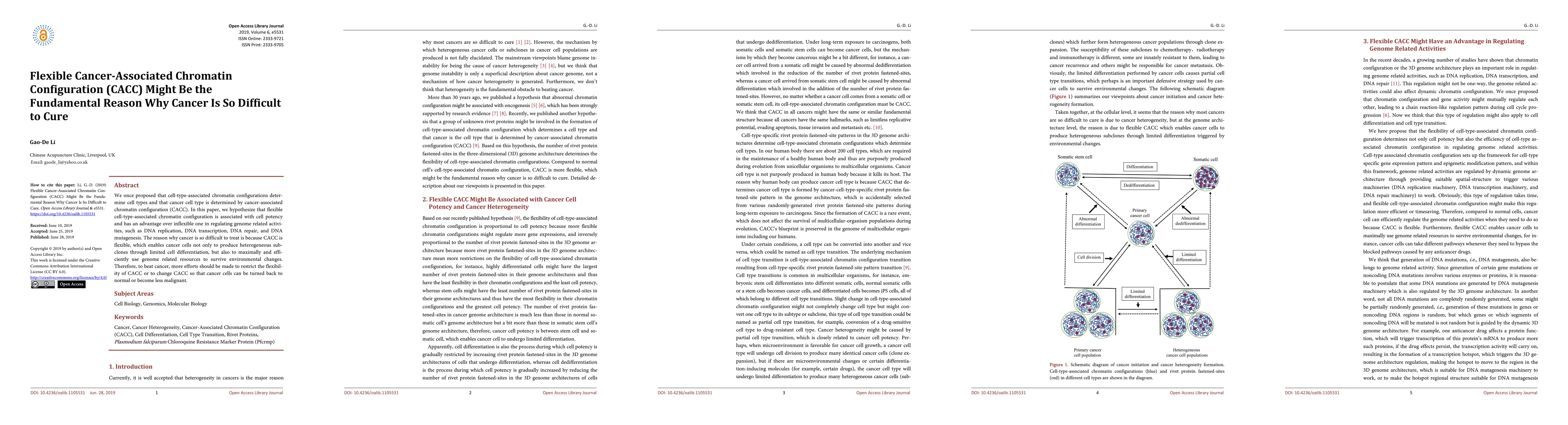 This paper hypothesizes that flexible cancer-associated chromatin configuration (CACC) contributes to cancer's difficulty to cure by enabling cancer cells to adapt and survive through diverse subclones and efficient resource utilization. To combat cancer, strategies should aim to restrict CACC flexibility or modify it to revert cancer cells to normal states.