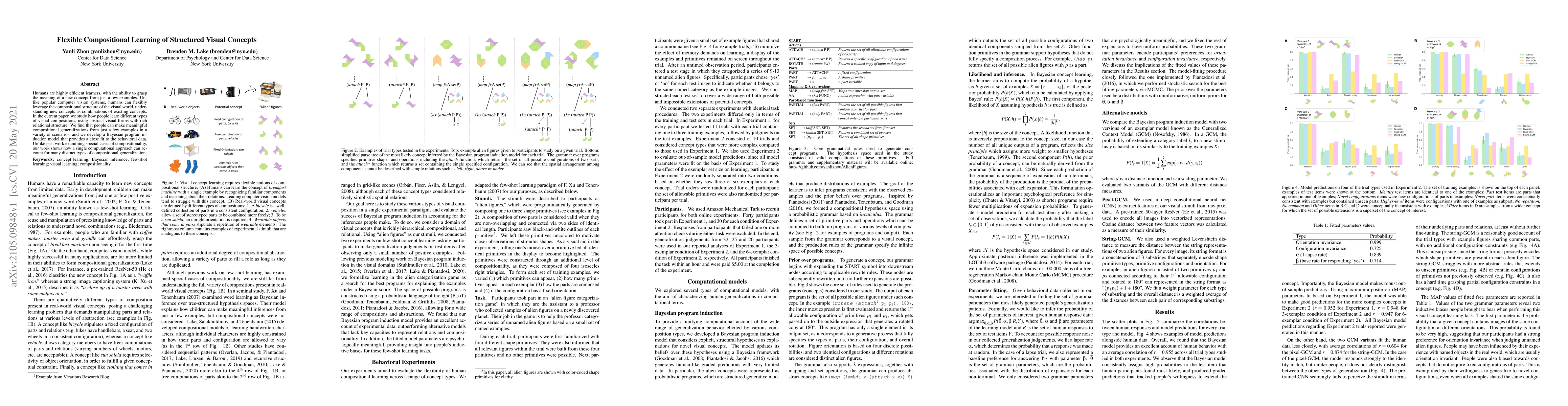 This paper investigates how humans efficiently learn new visual concepts through compositional generalization, demonstrating that people can understand complex visual compositions from limited examples. The study develops a Bayesian program induction model that closely matches human learning behavior, showing its applicability across various types of compositional structures.