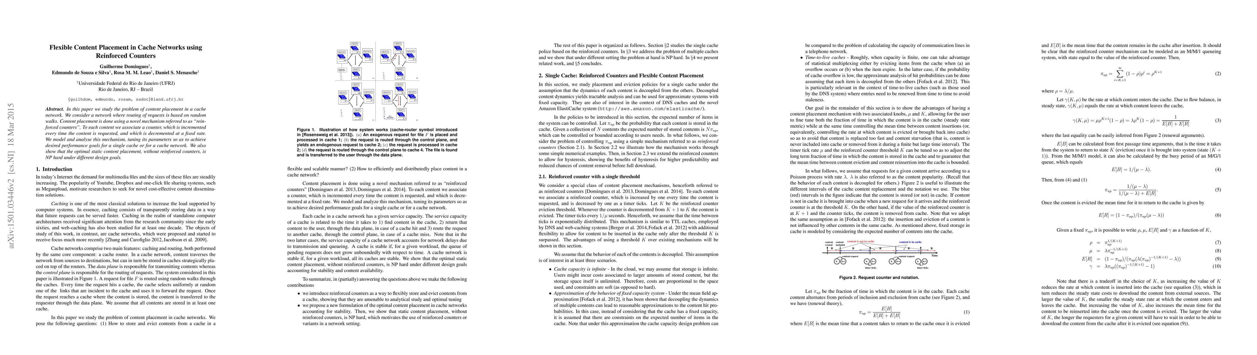 This paper explores content placement in cache networks using reinforced counters, where counters associated with content are incremented on requests and decremented at a fixed rate. The study models and analyzes this mechanism to achieve performance goals, demonstrating the NP-hardness of optimal static content placement without reinforced counters.