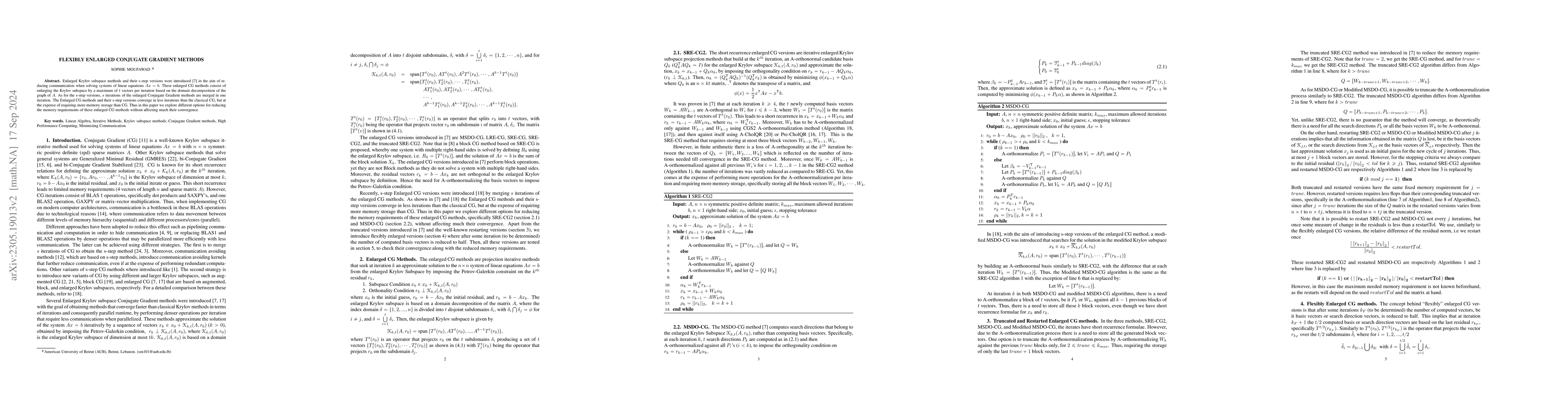This paper investigates flexible methods to reduce memory requirements for enlarged Conjugate Gradient (CG) techniques used in solving linear systems, while maintaining their faster convergence compared to classical CG. It explores various strategies to optimize memory usage without significantly impacting convergence performance.