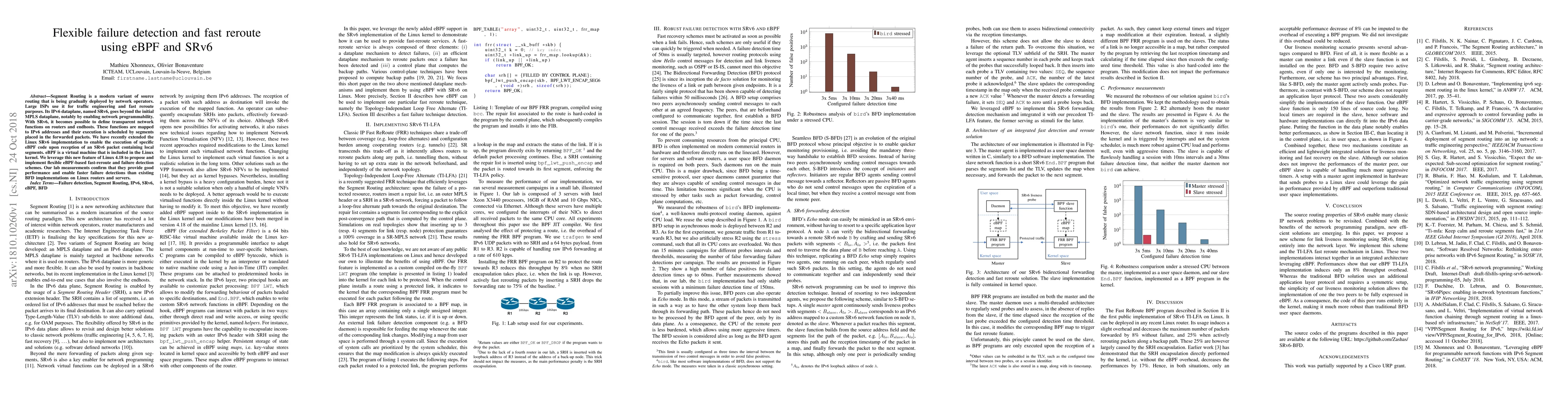 This paper proposes and implements flexible eBPF-based fast-reroute and failure detection schemes using the SRv6 protocol in the Linux kernel. The new approach enables faster failure detection and outperforms existing BFD implementations, demonstrating good performance in lab measurements.