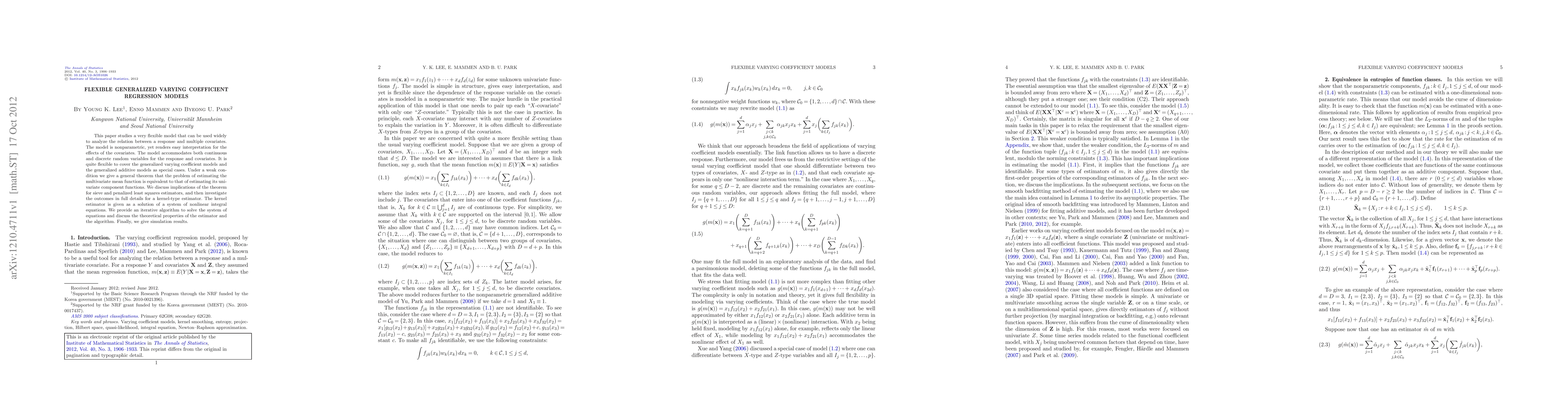 This paper introduces a flexible model for analyzing relationships between a response variable and multiple covariates, offering an easy-to-interpret nonparametric approach that covers generalized varying coefficient models and generalized additive models as special cases.