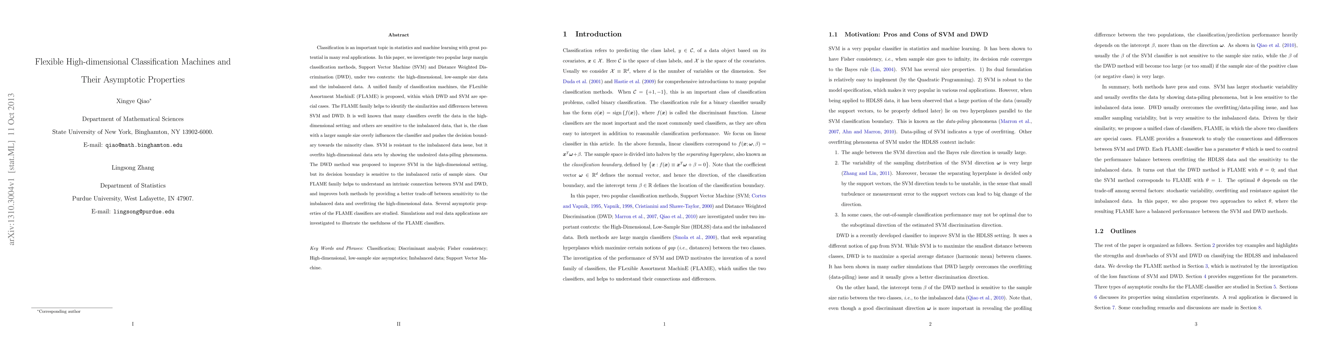 A new classification machine called FLAME improves upon existing methods SVM and DWD by balancing sensitivity to imbalanced data and overfitting high-dimensional data, leading to better performance in various simulations and real-world applications.
