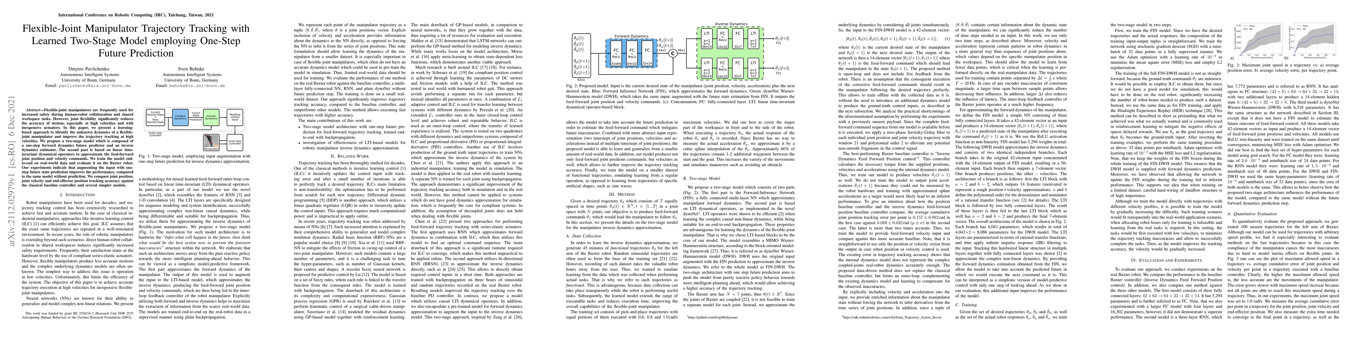 This paper proposes a learning-based two-stage model to improve trajectory tracking for flexible-joint manipulators, using a one-step future state predictor and an inverse dynamics estimator. The model shows enhanced performance compared to classical baselines, especially at high velocities.