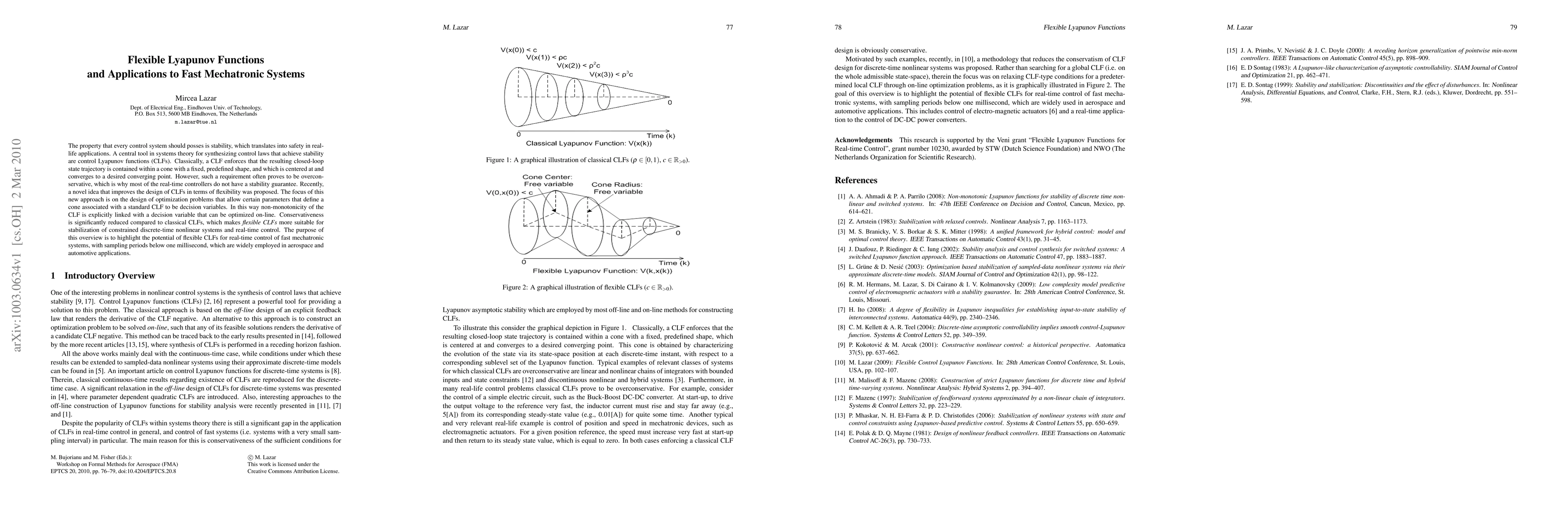 The property that every control system should posses is stability, which translates into safety in real-life applications. A central tool in systems theory for synthesizing control laws that achieve stability are control Lyapunov functions (CLFs). Classically, a CLF enforces that the resulting closed-loop state trajectory is contained within a cone with a fixed, predefined shape, and which is centered at and converges to a desired converging point. However, such a requirement often proves to be overconservative, which is why most of the real-time controllers do not have a stability guarantee. Recently, a novel idea that improves the design of CLFs in terms of flexibility was proposed. The focus of this new approach is on the design of optimization problems that allow certain parameters that define a cone associated with a standard CLF to be decision variables. In this way non-monotonicity of the CLF is explicitly linked with a decision variable that can be optimized on-line. Conservativeness is significantly reduced compared to classical CLFs, which makes \emph{flexible CLFs} more suitable for stabilization of constrained discrete-time nonlinear systems and real-time control. The purpose of this overview is to highlight the potential of flexible CLFs for real-time control of fast mechatronic systems, with sampling periods below one millisecond, which are widely employed in aerospace and automotive applications.
