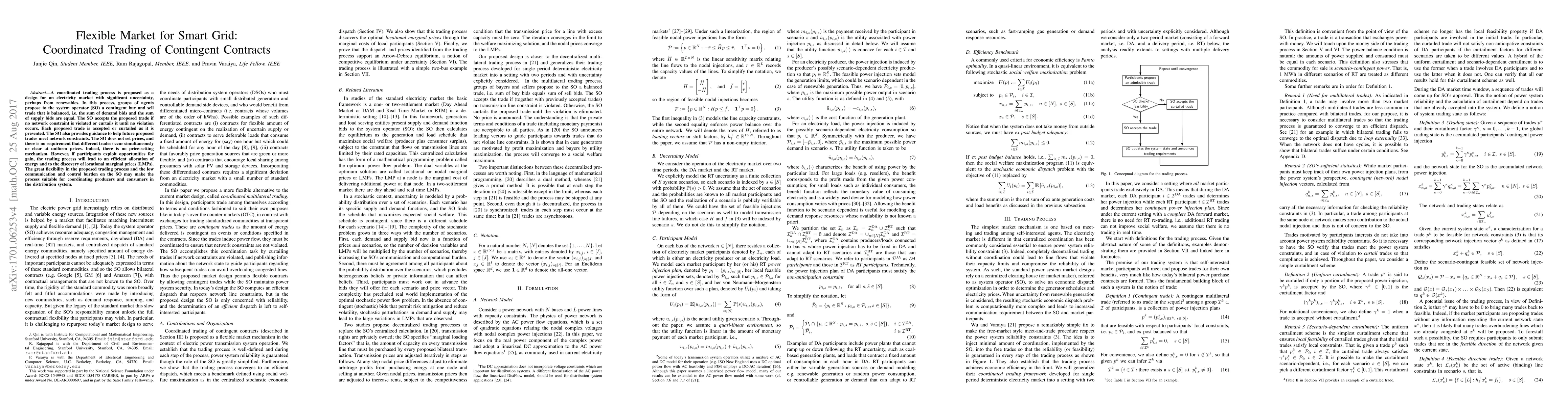 A coordinated trading process is proposed as a design for an electricity market with significant uncertainty, perhaps from renewables. In this process, groups of agents propose to the system operator (SO) a contingent buy and sell trade that is balanced, i.e. the sum of demand bids and the sum of supply bids are equal. The SO accepts the proposed trade if no network constraint is violated or curtails it until no violation occurs. Each proposed trade is accepted or curtailed as it is presented. The SO also provides guidance to help future proposed trades meet network constraints. The SO does not set prices, and there is no requirement that different trades occur simultaneously or clear at uniform prices. Indeed, there is no price-setting mechanism. However, if participants exploit opportunities for gain, the trading process will lead to an efficient allocation of energy and to the discovery of locational marginal prices (LMPs). The great flexibility in the proposed trading process and the low communication and control burden on the SO may make the process suitable for coordinating producers and consumers in the distribution system.
