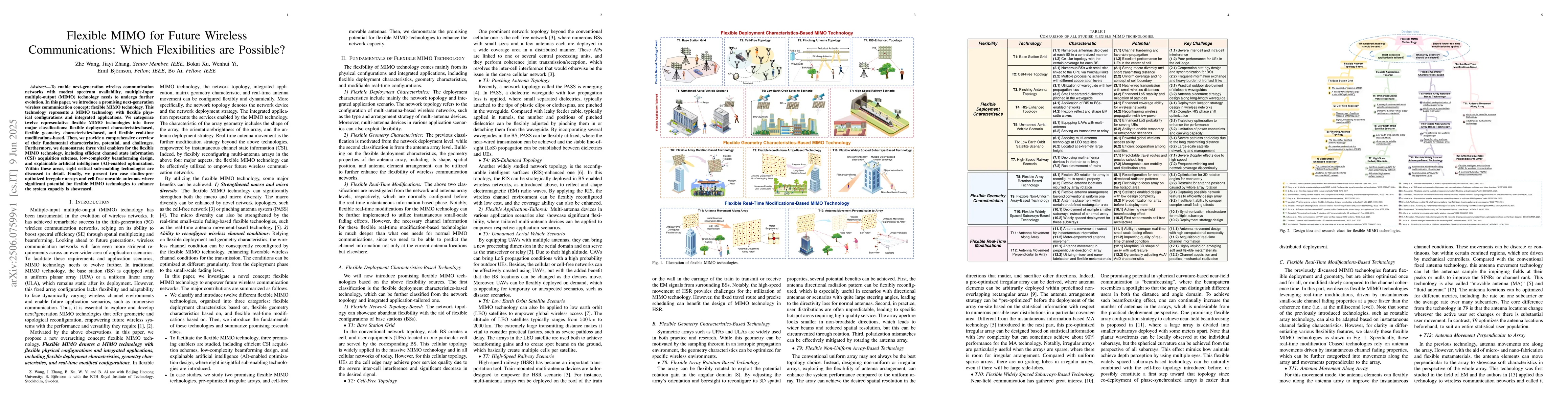 This paper introduces flexible MIMO technology with three major classifications and discusses key enablers for its development, including efficient CSI acquisition schemes, low-complexity beamforming design, and explainable AI optimization.