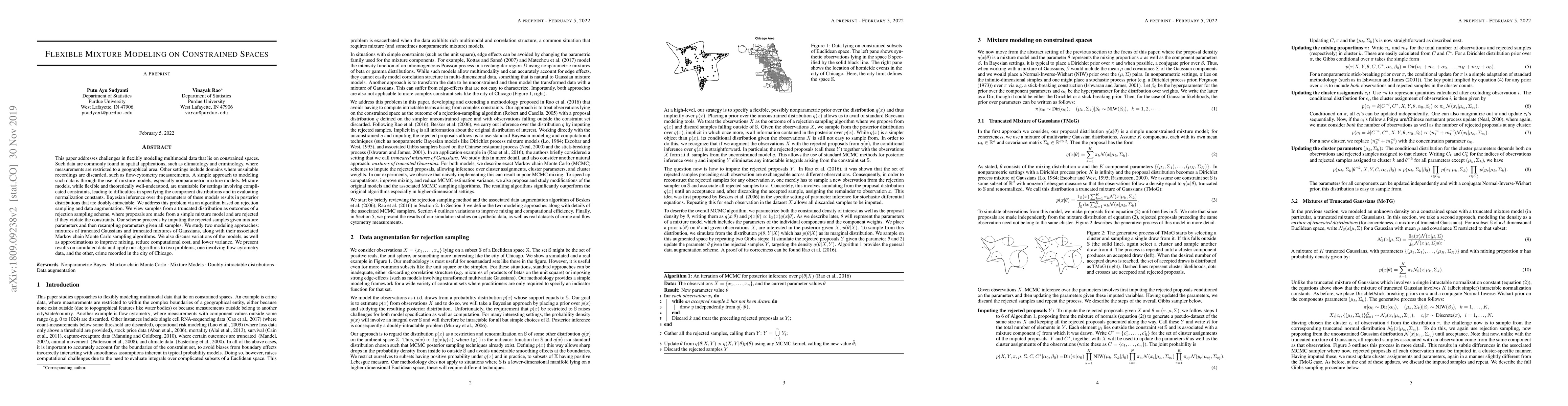 Researchers developed an algorithm to model multimodal data on constrained spaces using rejection sampling and data augmentation, addressing challenges in specifying component distributions and evaluating normalization constants in mixture models.