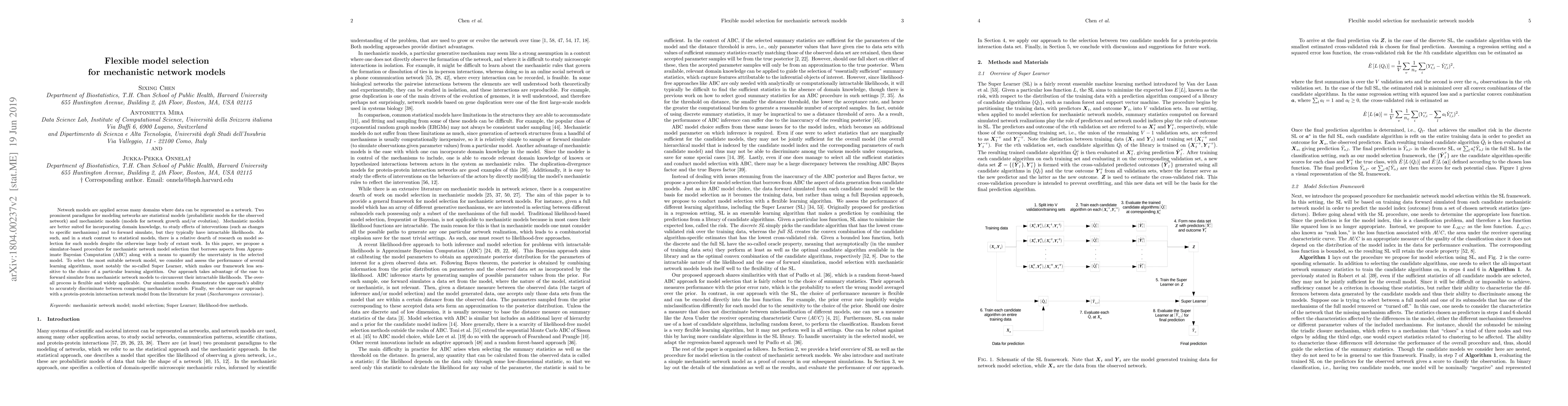 This paper proposes a simulator-based procedure for mechanistic network model selection that can accurately discriminate between competing models, offering a flexible and widely applicable approach to overcome the challenges of intractable likelihoods.