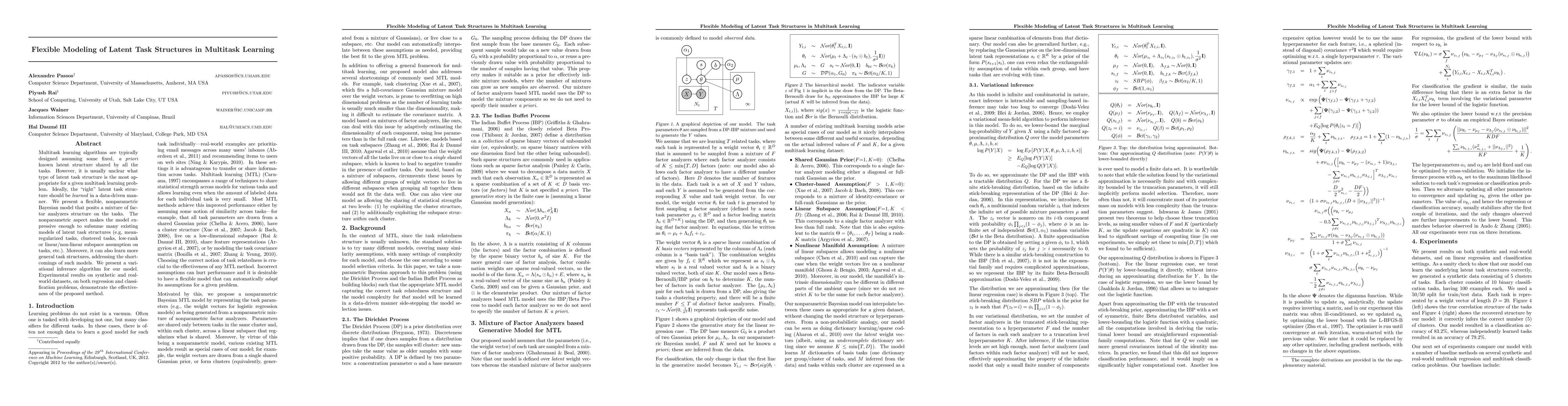 This paper proposes a flexible, nonparametric Bayesian model for multitask learning that uses a mixture of factor analyzers to determine latent task structures in a data-driven manner. The model can learn more general task structures than existing methods and is demonstrated to be effective through experiments on various datasets.