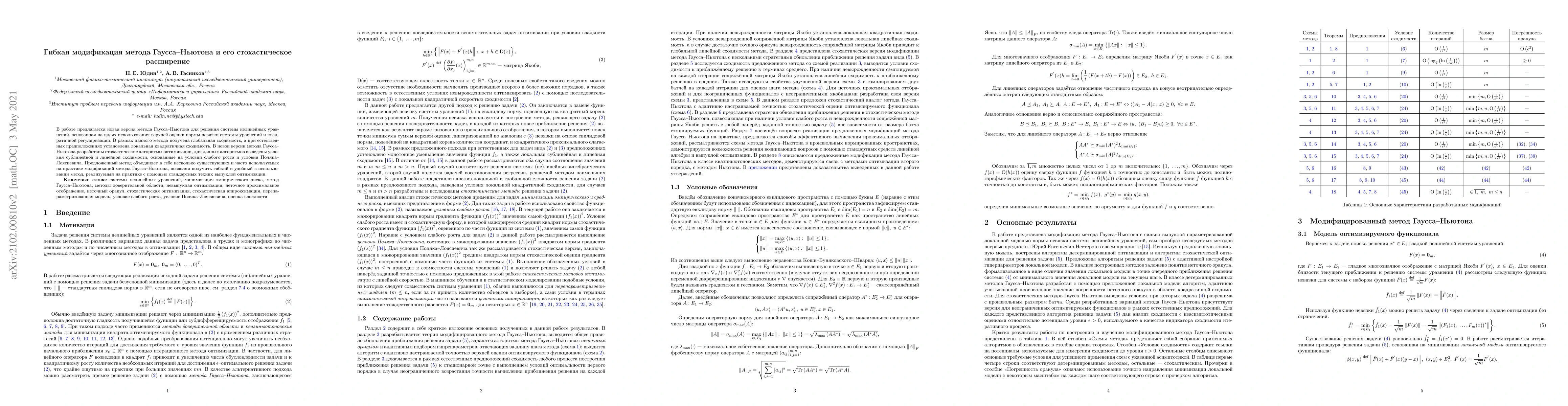 This work presents a novel version of recently developed Gauss-Newton method for solving systems of nonlinear equations, based on upper bound of solution residual and quadratic regularization ideas. We obtained for such method global convergence bounds and under natural non-degeneracy assumptions we present local quadratic convergence results. We developed stochastic optimization algorithms for presented Gauss-Newton method and justified sub-linear and linear convergence rates for these algorithms using weak growth condition (WGC) and Polyak-Lojasiewicz (PL) inequality. We show that Gauss-Newton method in stochastic setting can effectively find solution under WGC and PL condition matching convergence rate of the deterministic optimization method. The suggested method unifies most practically used Gauss-Newton method modifications and can easily interpolate between them providing flexible and convenient method easily implementable using standard techniques of convex optimization.