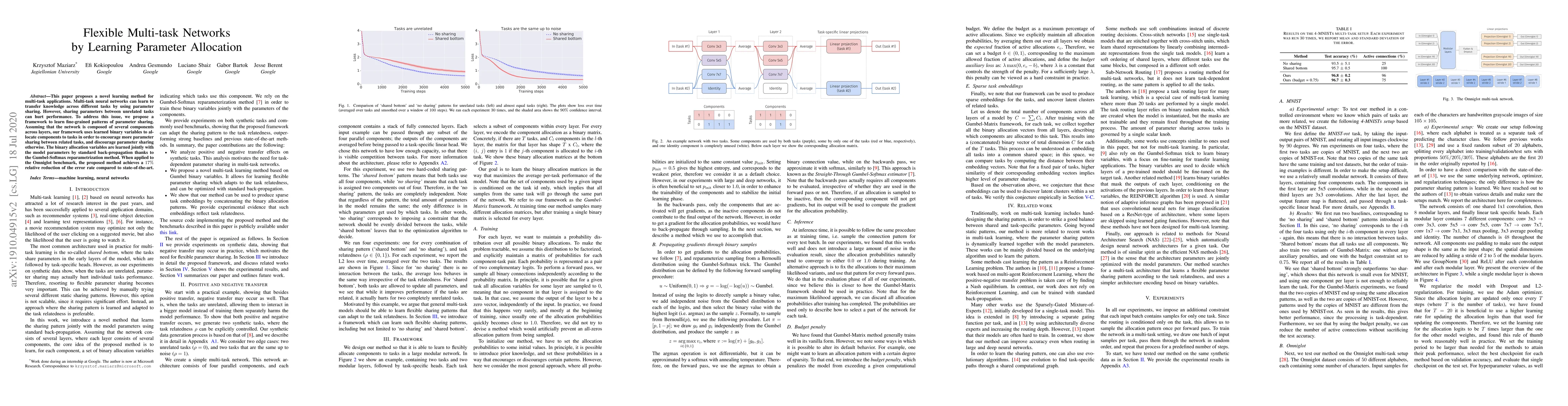 A new learning method for multi-task neural networks is proposed, which learns to allocate parameters between tasks in a flexible way to improve performance.