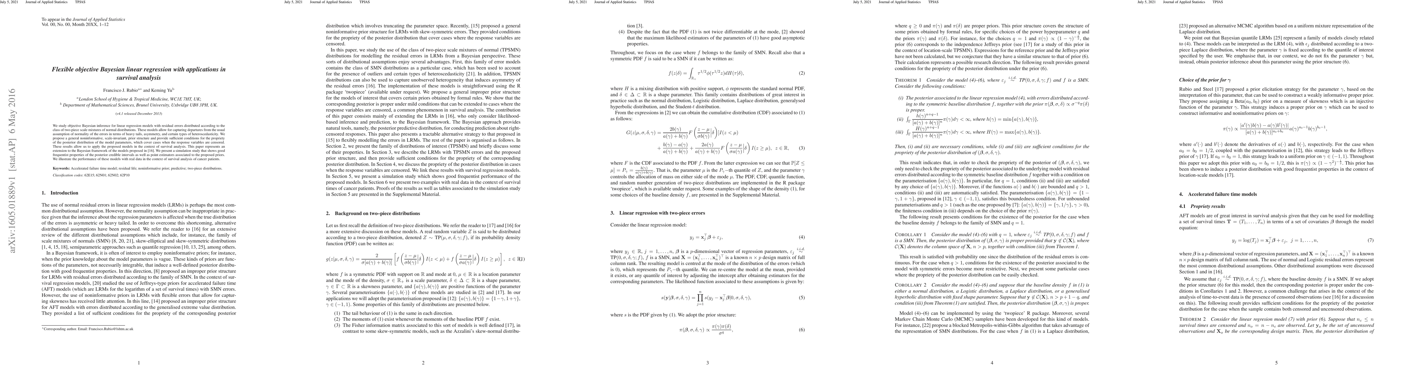 This paper proposes a flexible Bayesian linear regression model with scale-mixtures of normal distributions to capture non-normal error patterns, showing good frequentist properties in simulation studies and real-world applications in survival analysis.