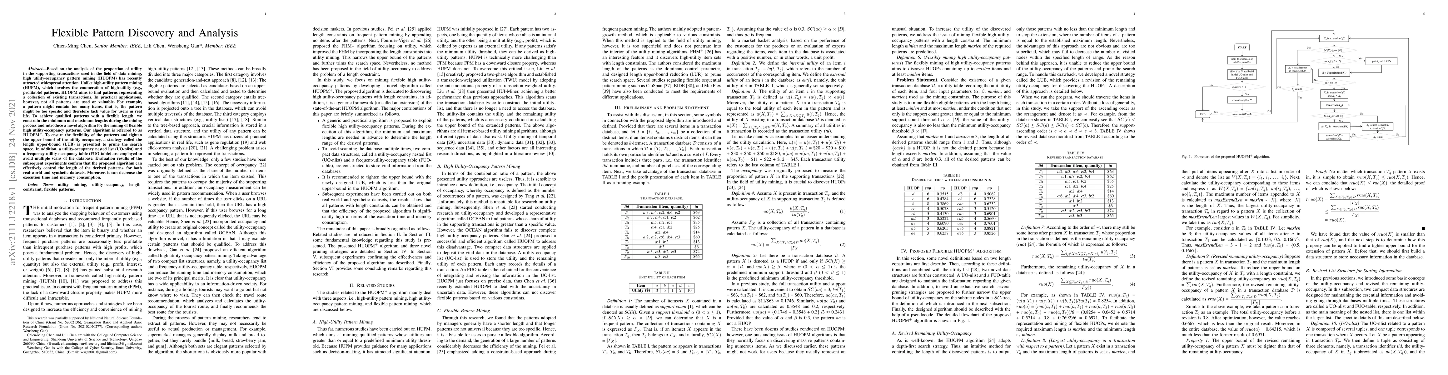 This paper proposes HUOPM+, an algorithm for mining flexible high utility-occupancy patterns by constraining pattern lengths and employing a length upper-bound (LUB) strategy. The method uses a utility-occupancy nested list and a frequency-utility-occupancy table to optimize performance, demonstrating effective pattern length control and reduced execution time and memory usage.