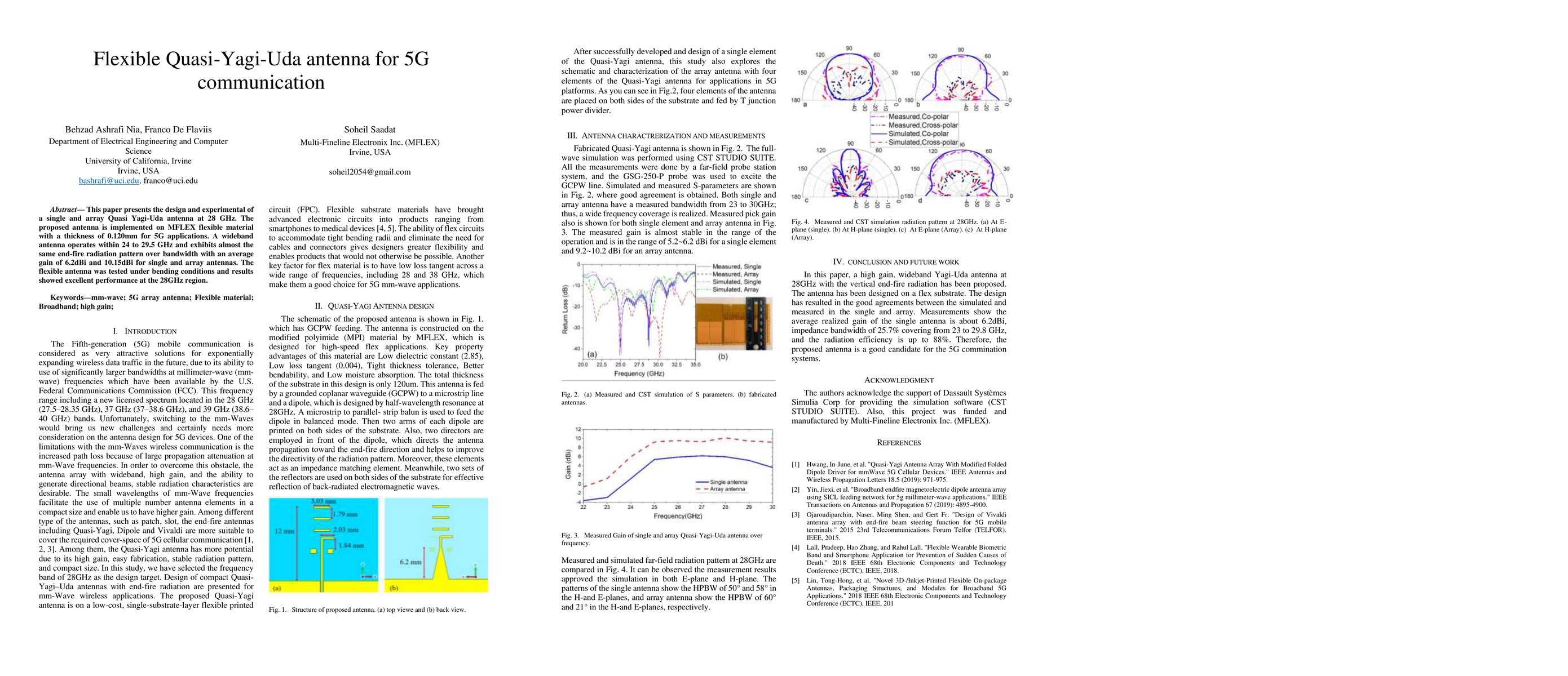 The proposed antenna was designed using a modified polyimide material with low dielectric constant and loss tangent, and fabricated on a flexible substrate.