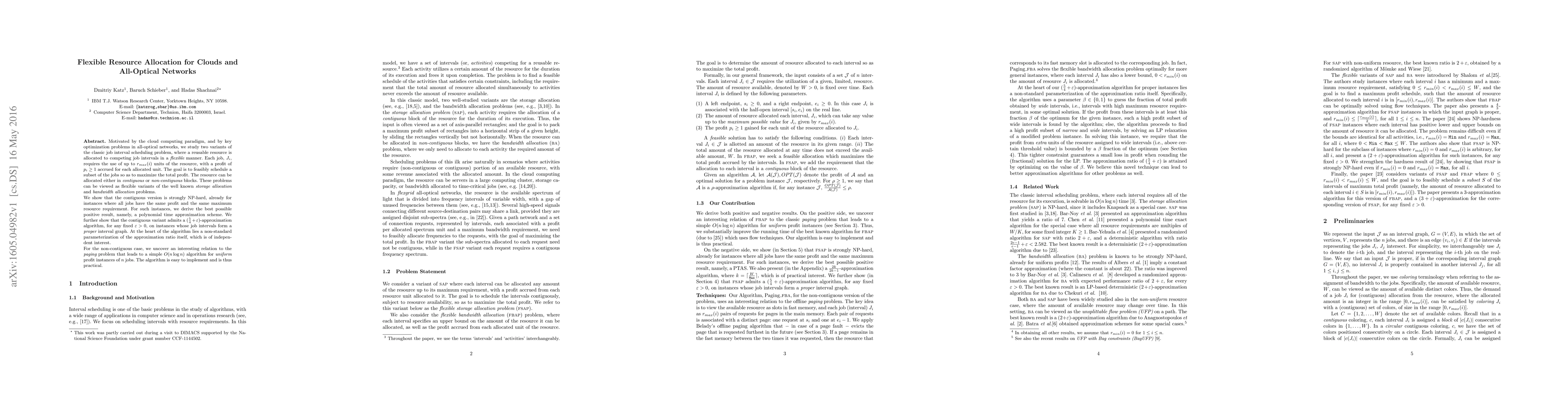Motivated by the cloud computing paradigm, and by key optimization problems in all-optical networks, we study two variants of the classic job interval scheduling problem, where a reusable resource is allocated to competing job intervals in a flexible manner. Each job, $J_i$, requires the use of up to $r_{max}(i)$ units of the resource, with a profit of $p_i \geq 1$ accrued for each allocated unit. The goal is to feasibly schedule a subset of the jobs so as to maximize the total profit. The resource can be allocated either in contiguous or non-contiguous blocks. These problems can be viewed as flexible variants of the well known storage allocation and bandwidth allocation problems. We show that the contiguous version is strongly NP-hard, already for instances where all jobs have the same profit and the same maximum resource requirement. For such instances, we derive the best possible positive result, namely, a polynomial time approximation scheme. We further show that the contiguous variant admits a $(\frac{5}{4} + \varepsilon)$-approximation algorithm, for any fixed $\varepsilon > 0$, on instances whose job intervals form a proper interval graph. At the heart of the algorithm lies a non-standard parameterization of the approximation ratio itself, which is of independent interest. For the non-contiguous case, we uncover an interesting relation to the paging problem that leads to a simple $O(n \log n)$ algorithm for uniform profit instances of n jobs. The algorithm is easy to implement and is thus practical.