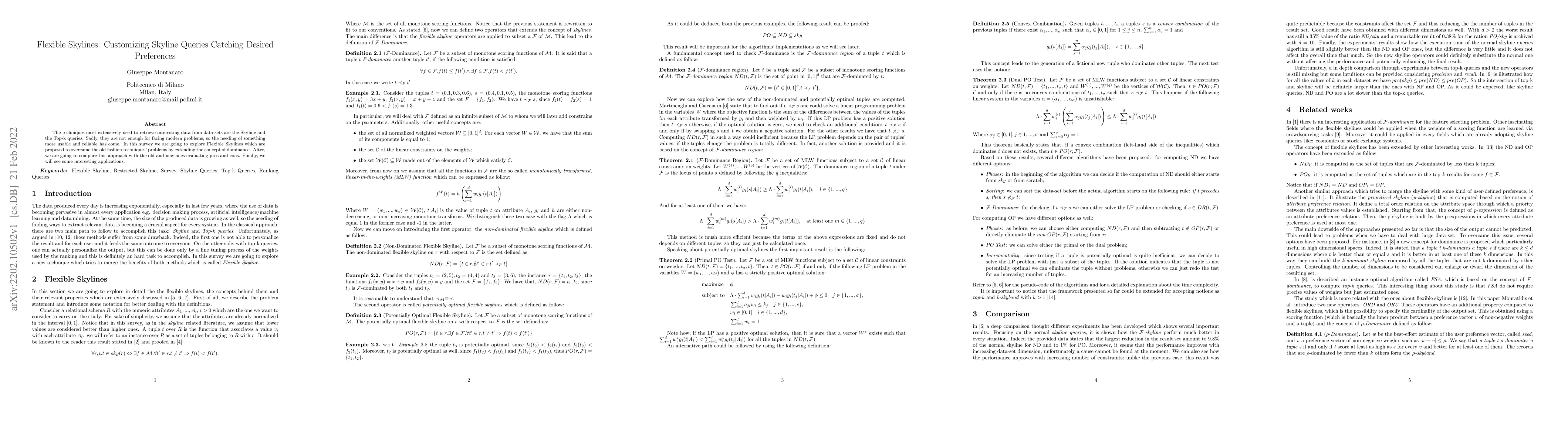 The techniques most extensively used to retrieve interesting data from data-sets are the Skyline and the Top-k queries. Sadly, they are not enough for facing modern problems, so the needing of something more usable and reliable has come. In this survey we are going to explore Flexible Skylines which are proposed to overcame the old fashion techniques' problems by extending the concept of dominance. After, we are going to compare this approach with the old and new ones evaluating pros and cons. Finally, we will see some interesting applications.