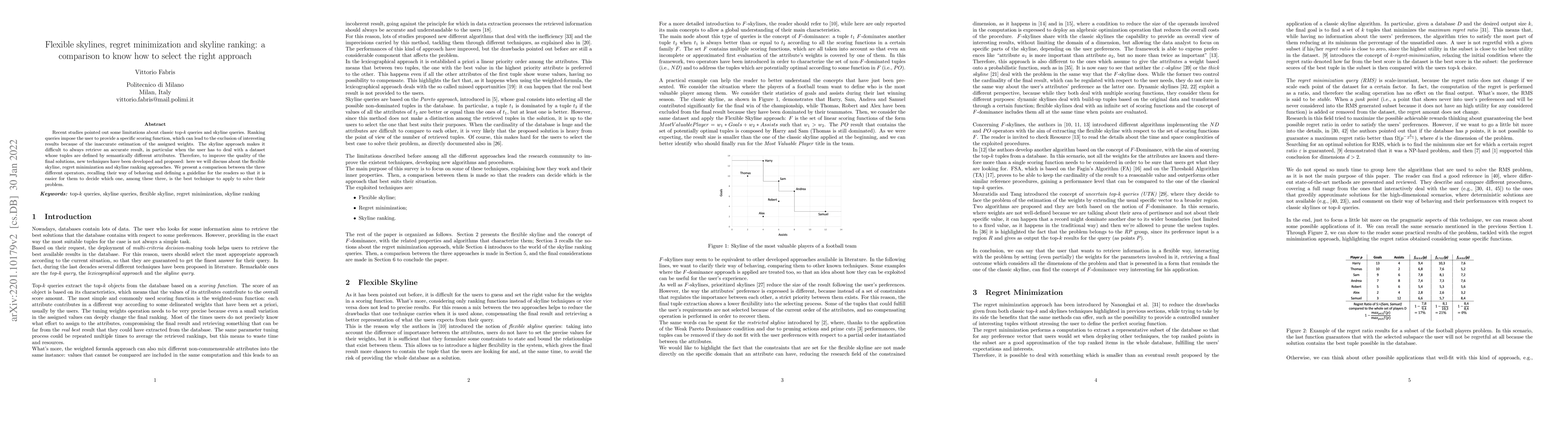 This work distinguishes itself by providing a clear comparison and guidelines for selecting among these three approaches, addressing the shortcomings of classic top-k queries and skyline queries.