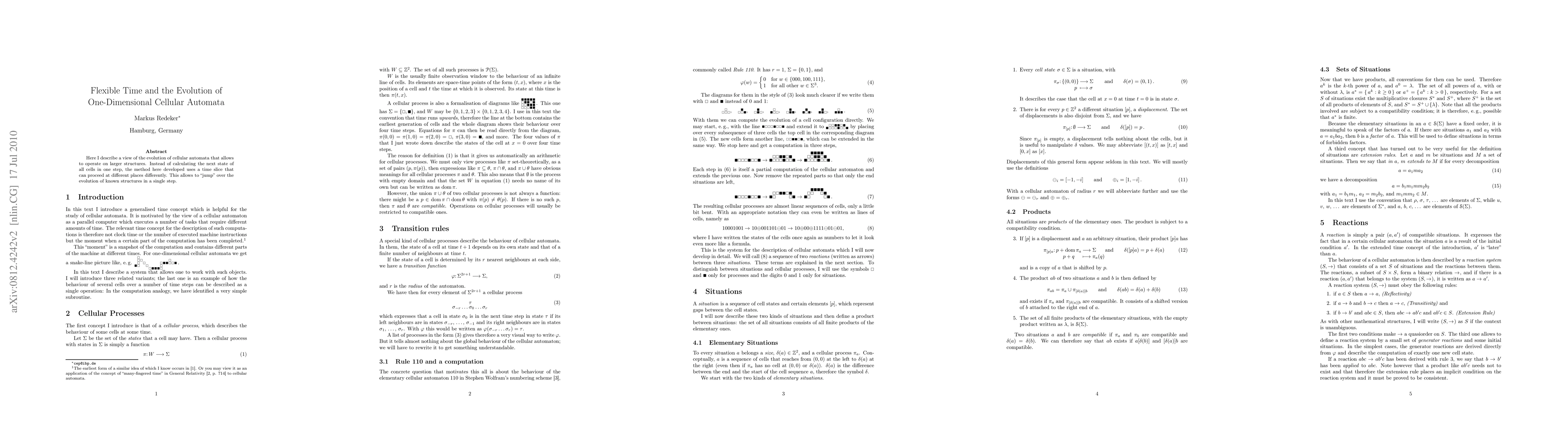 Here I describe a view of the evolution of cellular automata that allows to operate on larger structures. Instead of calculating the next state of all cells in one step, the method here developed uses a time slice that can proceed at different places differently. This allows to "jump" over the evolution of known structures in a single step.