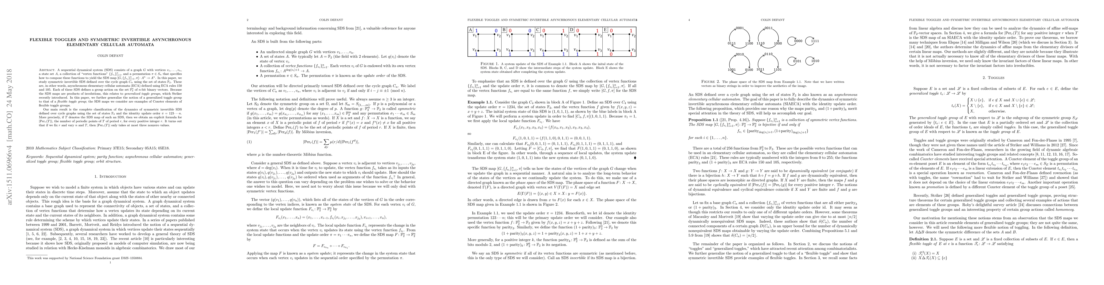A sequential dynamical system (SDS) consists of a graph $G$ with vertices $v_1,v_2,\ldots,v_n$, a state set $A$, a collection of "vertex functions" $\{f_{v_i}\}_{i=1}^n$, and a permutation $\pi\in S_n$ that specifies how to compose these functions to yield the SDS map $[G,\{f_{v_i}\}_{i=1}^n,\pi]\colon A^n\to A^n$. In this paper, we study symmetric invertible SDS defined over the cycle graph $C_n$ using the set of states $\mathbb F_2$. These are, in other words, asynchronous elementary cellular automata (ECA) defined using ECA rules 150 and 105. Each of these SDS defines a group action on the set $\mathbb F_2^n$ of $n$-bit binary vectors. Because the SDS maps are products of involutions, this relates to \emph{generalized toggle groups}, which Striker recently defined. In this paper, we further generalize the notion of a generalized toggle group to that of a \emph{flexible toggle group}; the SDS maps we consider are examples of Coxeter elements of flexible toggle groups. Our main result is the complete classification of the dynamics of symmetric invertible SDS defined over cycle graphs using the set of states $\mathbb F_2$ and the identity update order $\pi=123\cdots n$. More precisely, if $T$ denotes the SDS map of such an SDS, then we obtain an explicit formula for $|\text{Per}_r(T)|$, the number of periodic points of $T$ of period $r$, for every positive integer $r$. It turns out that if we fix $r$ and vary $n$ and $T$, then $|\text{Per}_r(T)|$ only takes at most three nonzero values.