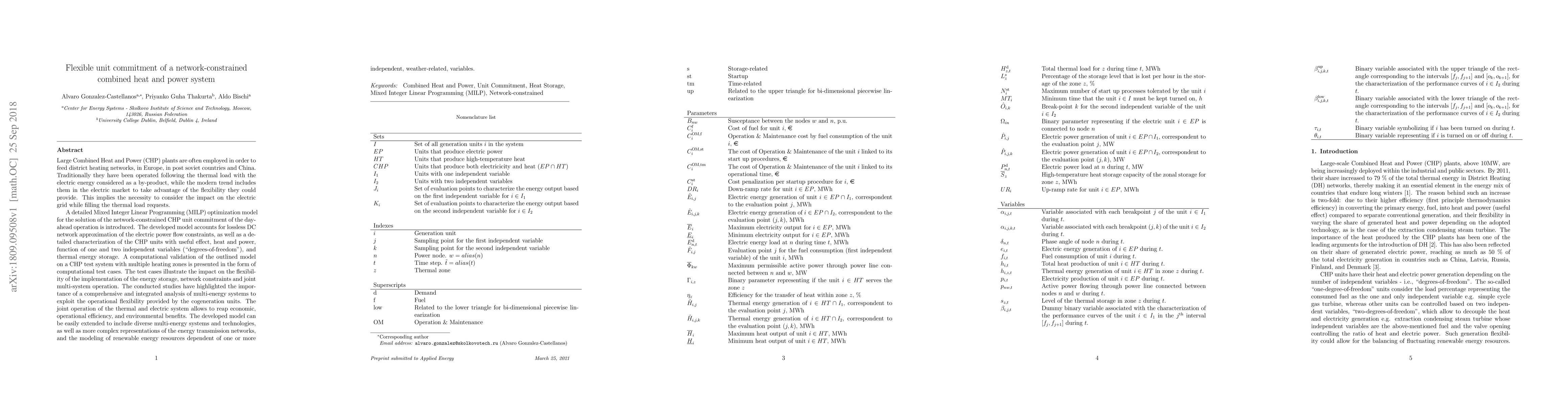 Large Combined Heat and Power (CHP) plants are often employed in order to feed district heating networks, in Europe, in post soviet countries and China. Traditionally they have been operated following the thermal load with the electric energy considered as a by-product, while the modern trend includes them in the electric market to take advantage of the flexibility they could provide. This implies the necessity to consider the impact on the electric grid while filling the thermal load requests. A detailed Mixed Integer Linear Programming (MILP) optimization model for the solution of the network-constrained CHP unit commitment of the day-ahead operation is introduced. The developed model accounts for lossless DC network approximation of the electric power flow constraints, as well as a detailed characterization of the CHP units with useful effect, heat and power, function of one and two independent variables ("degrees-of-freedom"), and thermal energy storage. A computational validation of the outlined model on a CHP test system with multiple heating zones is presented in the form of computational test cases. The test cases illustrate the impact on the flexibility of the implementation of the energy storage, network constraints and joint multi-system operation. The conducted studies have highlighted the importance of a comprehensive and integrated analysis of multi-energy systems to exploit the operational flexibility provided by the cogeneration units. The joint operation of the thermal and electric system allows to reap economic, operational efficiency, and environmental benefits. The developed model can be easily extended to include diverse multi-energy systems and technologies, as well as more complex representations of the energy transmission networks, and the modeling of renewable energy resources dependent of one or more independent, weather-related, variables.