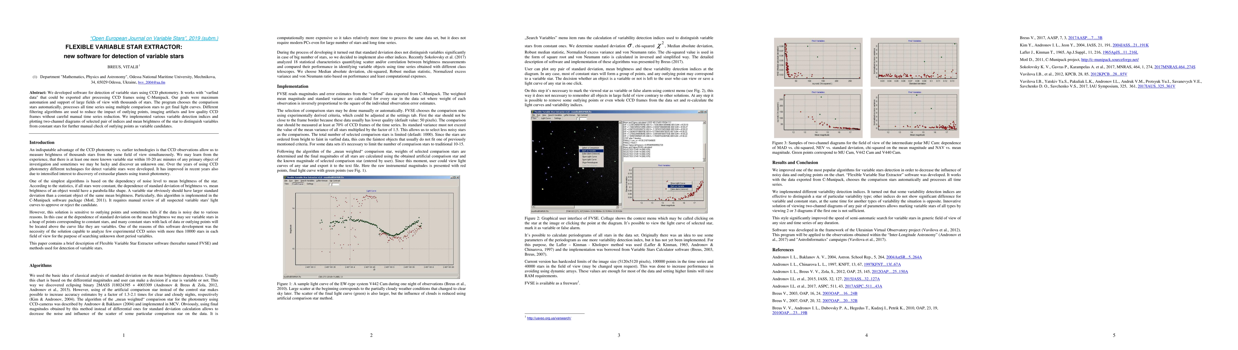 The Flexible Variable Star Extractor software automates the detection of variable stars from CCD photometry data, utilizing multiple comparison stars and advanced filtering to minimize manual intervention. It generates light curves and employs various detection indices and two-channel diagrams for further manual verification of variable candidates.
