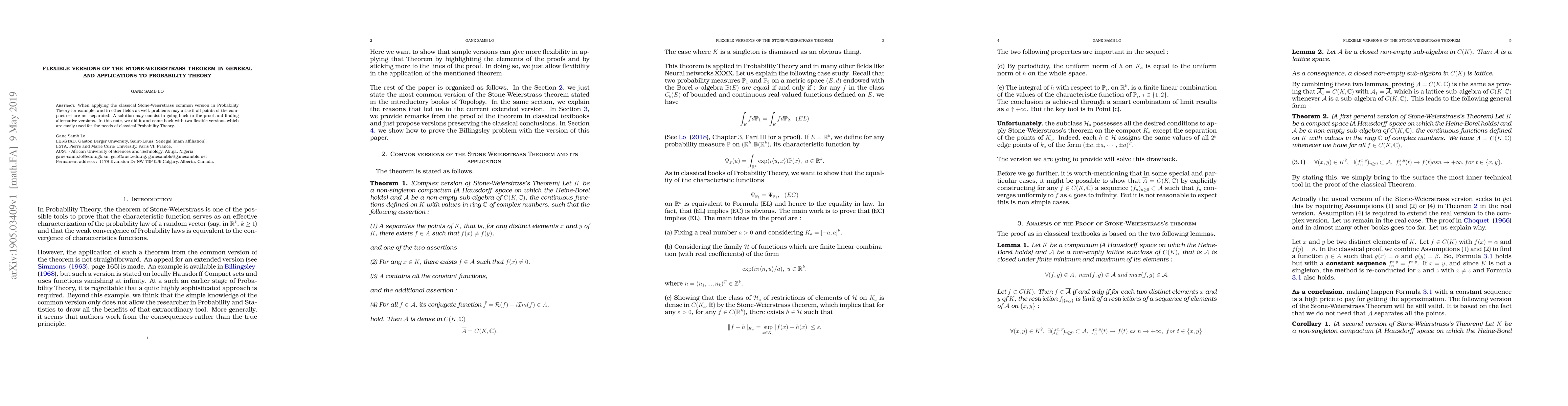 When applying the classical Stone-Weierstrass common version in Probability Theory for example, and in other fields as well, problems may arise if all points of the compact set are not separated. A solution may consist in going back to the proof and finding alternative versions. In this note, we did it and come back with two flexible versions which are easily used for the needs of classical Probability Theory.
