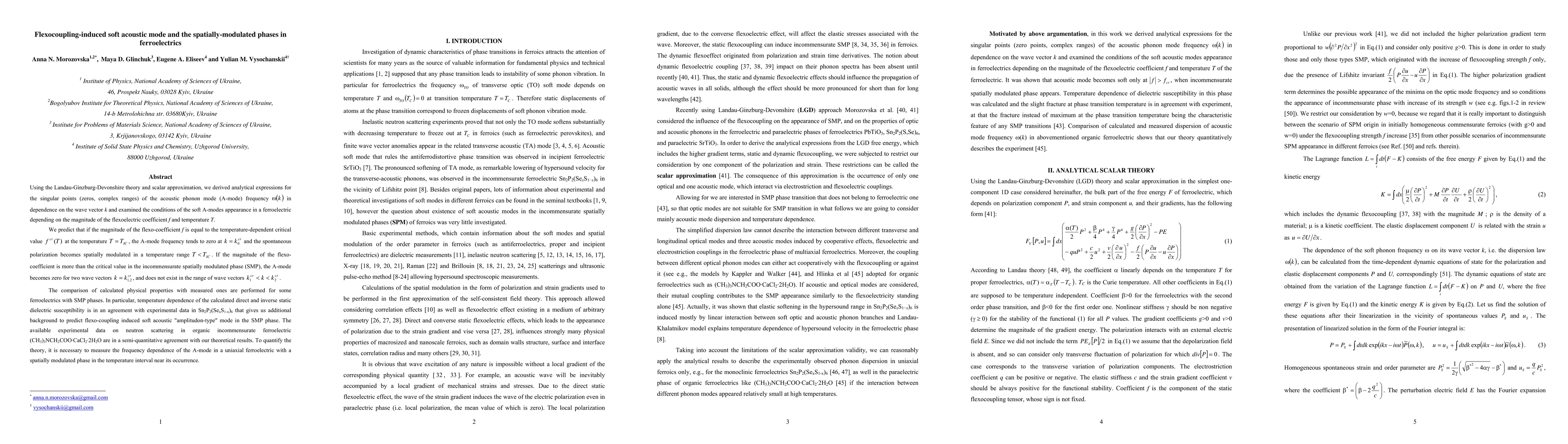 k and examined the conditions of the soft A modes appearance in a ferroelectric