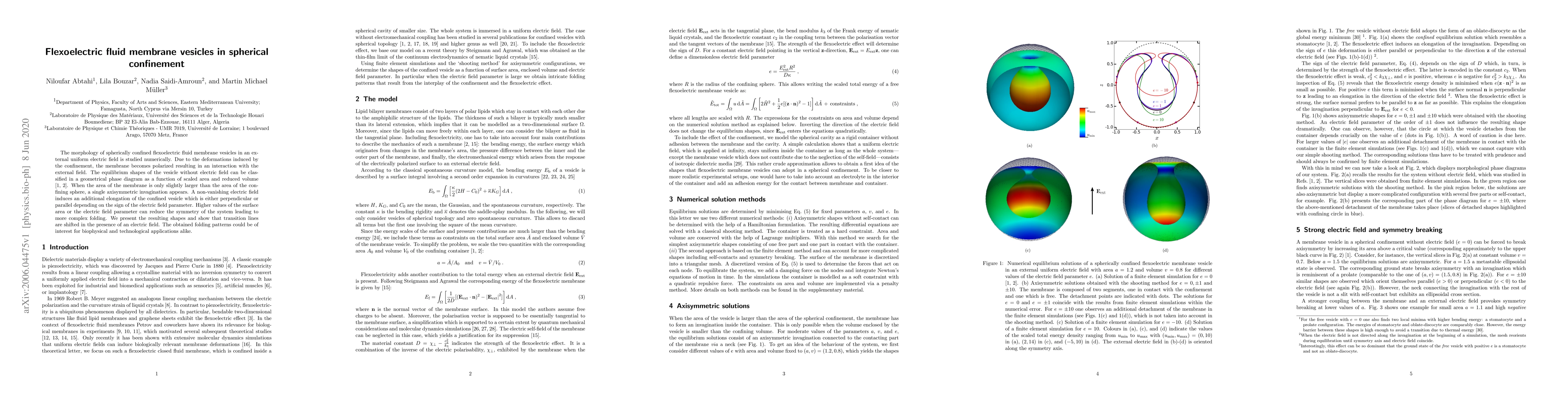 This paper numerically investigates the morphology of flexoelectric fluid membrane vesicles confined within a sphere under an external electric field, revealing how deformation and polarization lead to complex folding patterns and shifts in equilibrium shapes, with potential implications for both biophysics and technology.