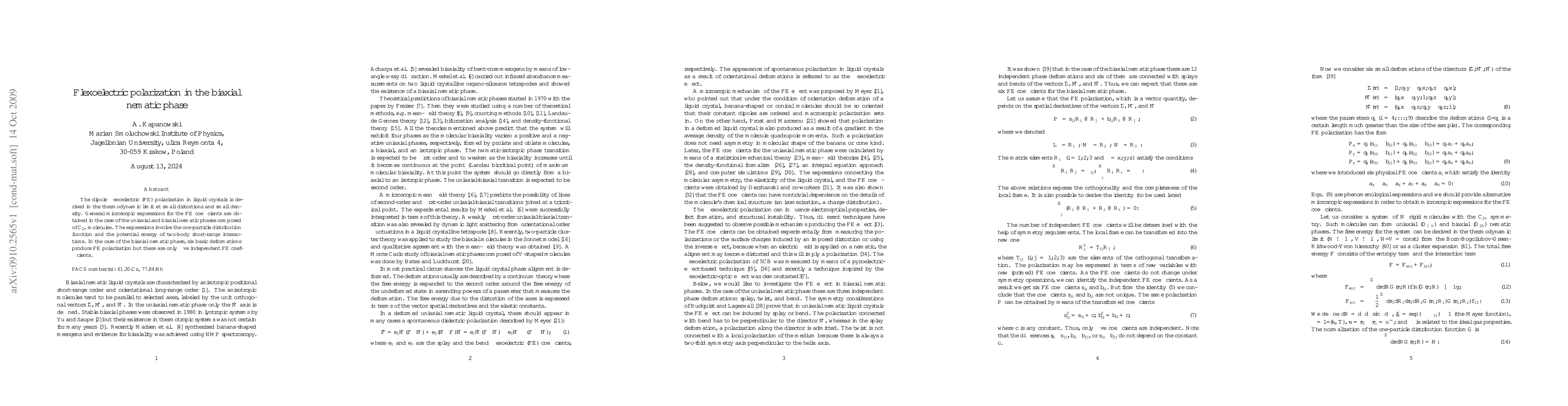 This paper derives dipole flexoelectric polarization in liquid crystals, focusing on uniaxial and biaxial nematic phases. For biaxial nematic phases, six deformations lead to flexoelectric polarization but only five independent flexoelectric coefficients exist due to inherent symmetries.