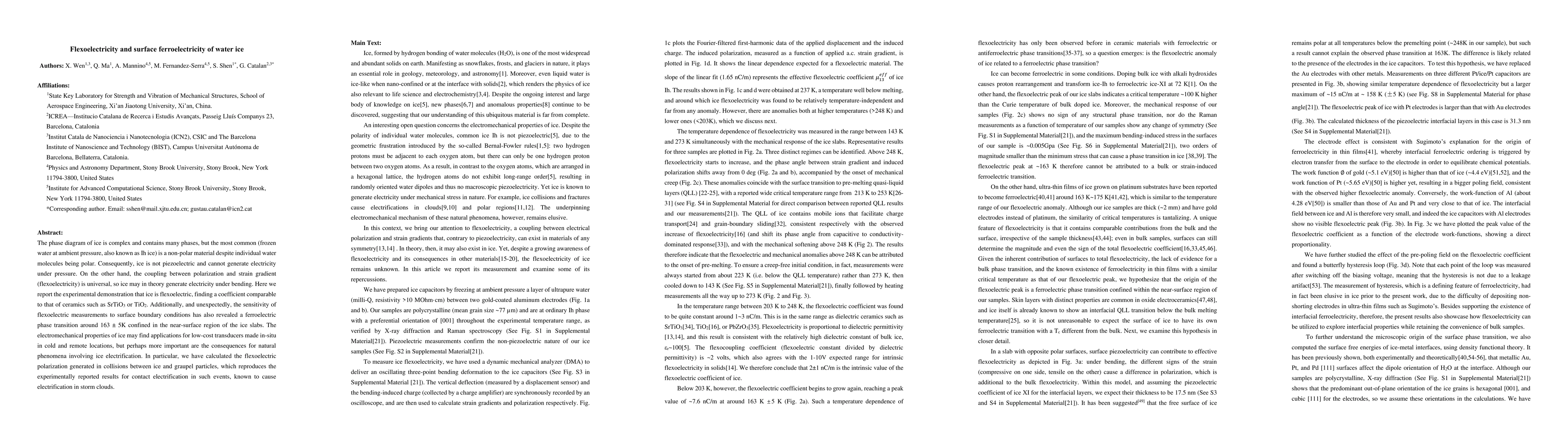 This paper investigates flexoelectricity in ice, demonstrating that it can polarize under bending, which may explain natural electrification processes like lightning. Additionally, it reveals a surface ferroelectric phase in ice near 163 K, suggesting complex boundary-related phenomena.