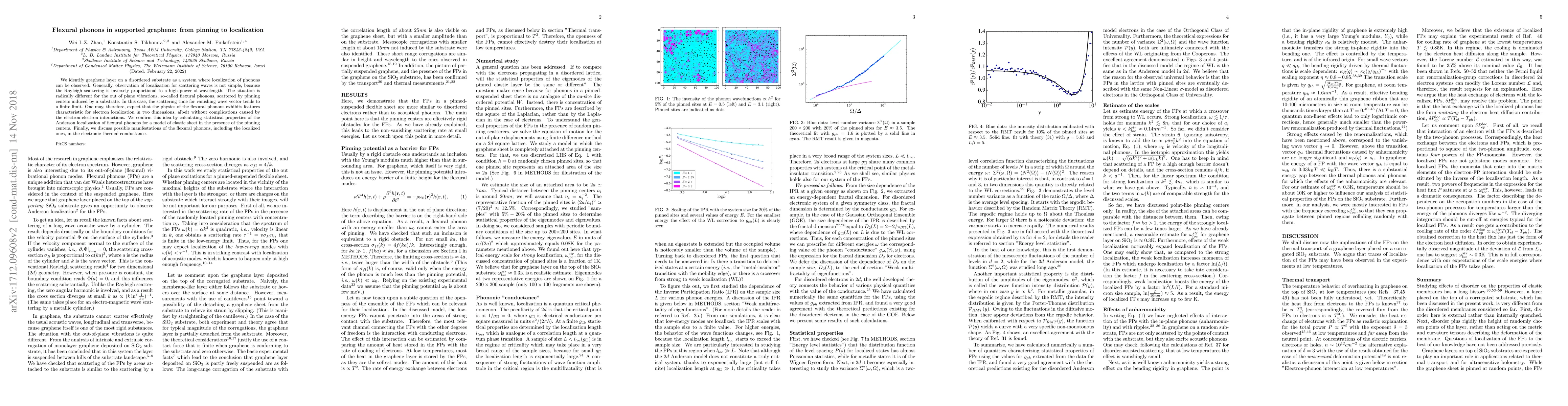 This paper explores the phenomenon of Anderson localization in flexural phonons in graphene on a disordered substrate, demonstrating that out-of-plane vibrations can exhibit localization features similar to those seen in electron systems, without electron-electron interactions. The study confirms these predictions through calculations on an elastic sheet model and discusses implications for thermal conductance.