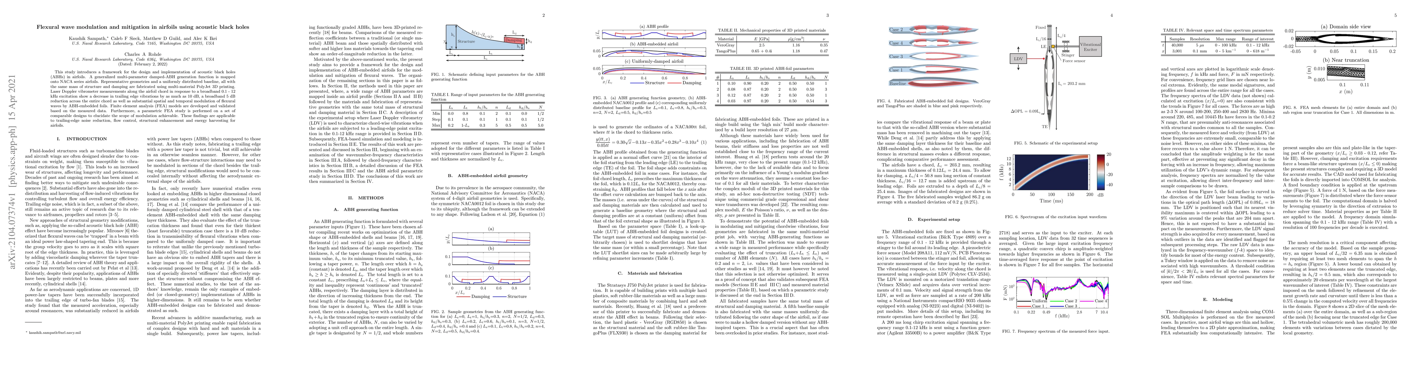 This study introduces a framework for the design and implementation of acoustic black holes (ABHs) in airfoils. A generalized multi-parameter damped-ABH generation function is mapped onto NACA series airfoils. Representative geometries and a uniformly distributed baseline, all with the same mass of structure and damping are fabricated using multi-material PolyJet 3D printing. Laser Doppler vibrometer measurements along the airfoil chord in response to a broadband 0.1 - 12 kHz excitation show a decrease in trailing edge vibrations by as much as 10 dB, a broadband 5 dB reduction across the entire chord as well as substantial spatial and temporal modulation of flexural waves by ABH-embedded foils. Finite element analysis (FEA) models are developed and validated based on the measured data. Furthermore, a parametric FEA study is performed on a set of comparable designs to elucidate the scope of modulation achievable. These findings are applicable to trailing-edge noise reduction, flow control, structural enhancement and energy harvesting for airfoils.