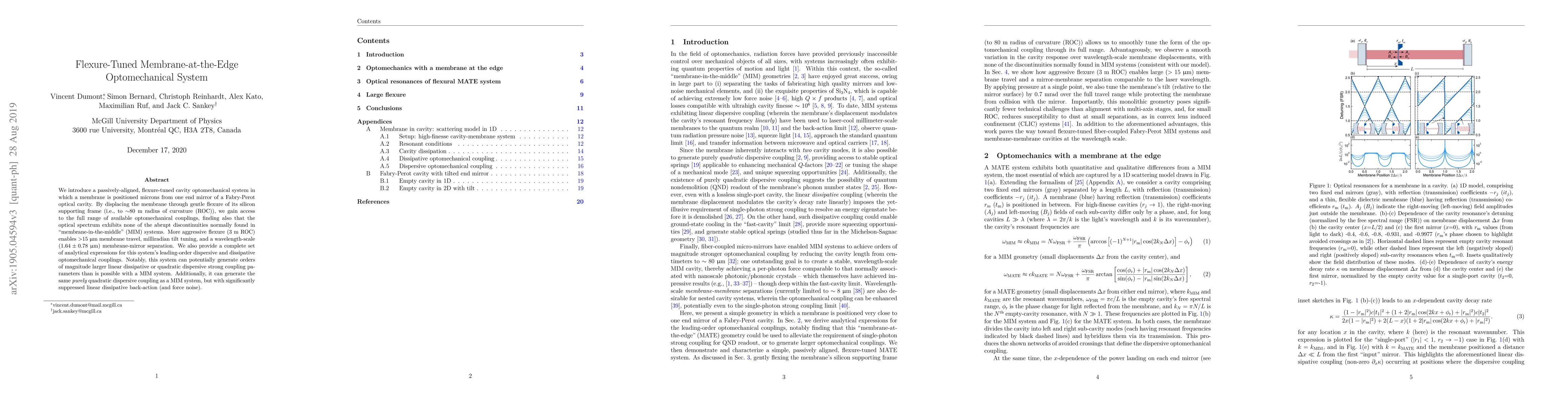 This paper presents a flexure-tuned optomechanical system where a membrane near one end mirror of a Fabry-Perot cavity allows for tunable optomechanical coupling without abrupt discontinuities. The system can achieve large membrane displacements and strong coupling, potentially surpassing "membrane-in-the-middle" systems in linear dissipative and quadratic dispersive coupling.